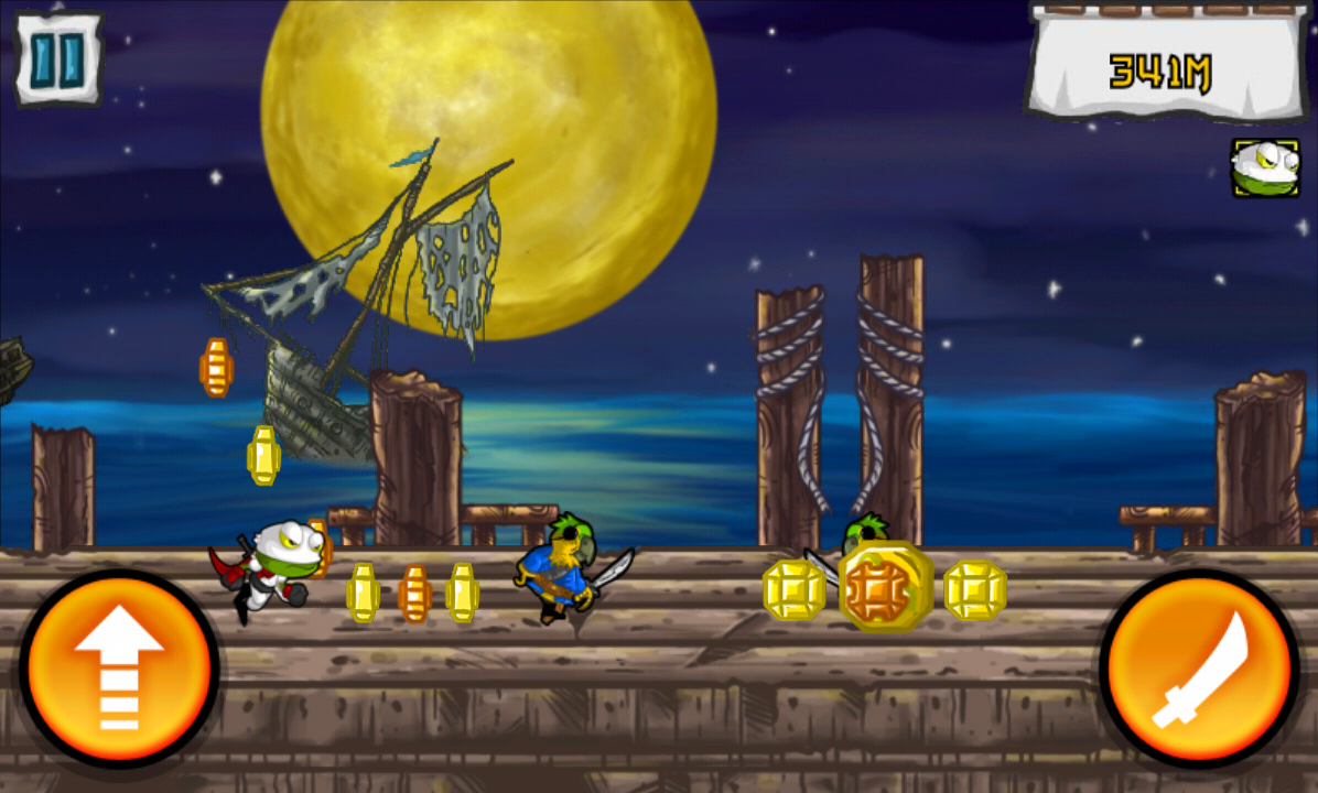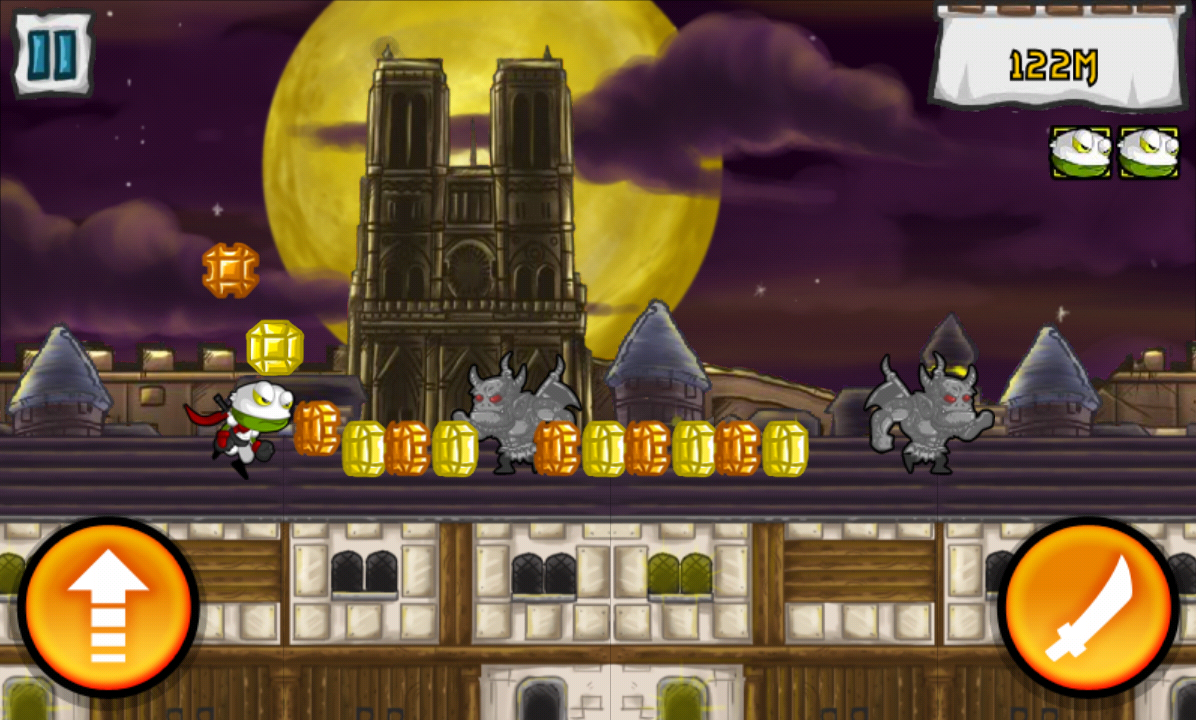 Upgrade your run and equip Ninja Frog with power ups including the Sands of Time, Bombs and the powerful Shuriken ninja stars.