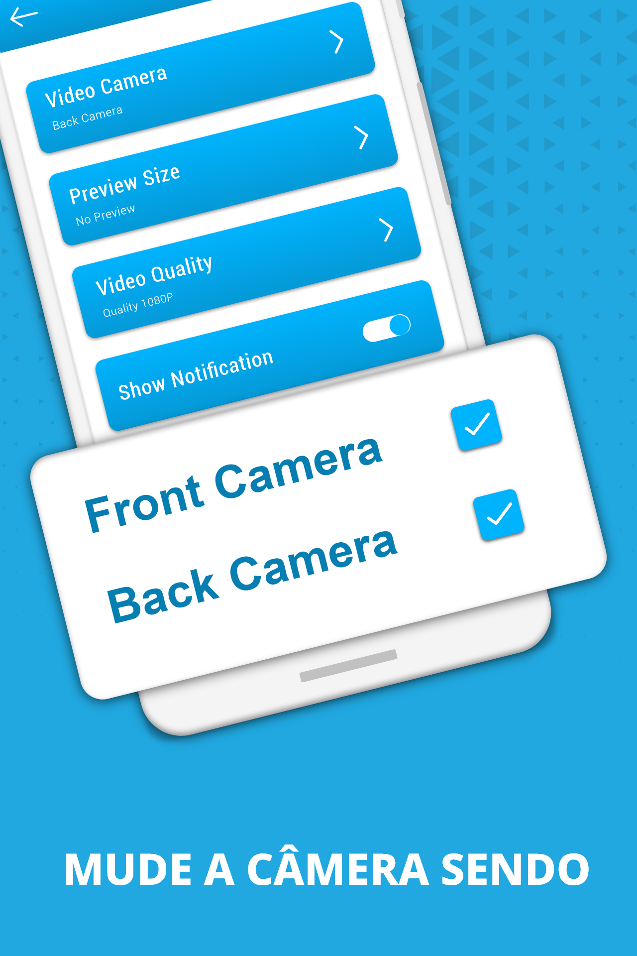 -O aplicativo gravador de vídeo possui uma câmera de tela de vídeo para a gravação de vídeo frontal e de fundo.