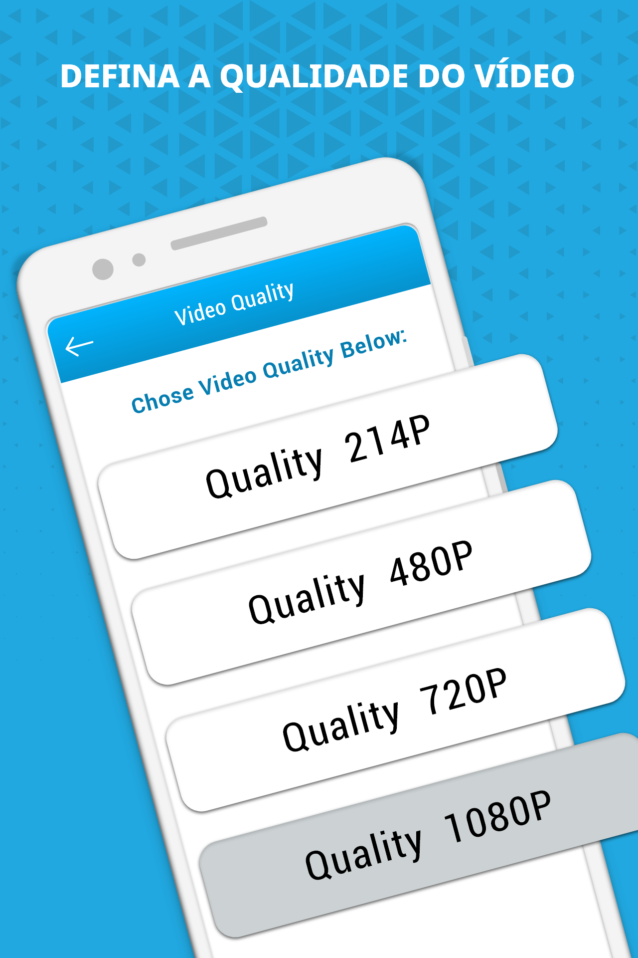 - A gravação de tela oferece opções para aumentar ou minimizar a qualidade do vídeo, como Qualidade-214p, Qualidade-480p, Qualidade-720p e Qualidade-1080p.