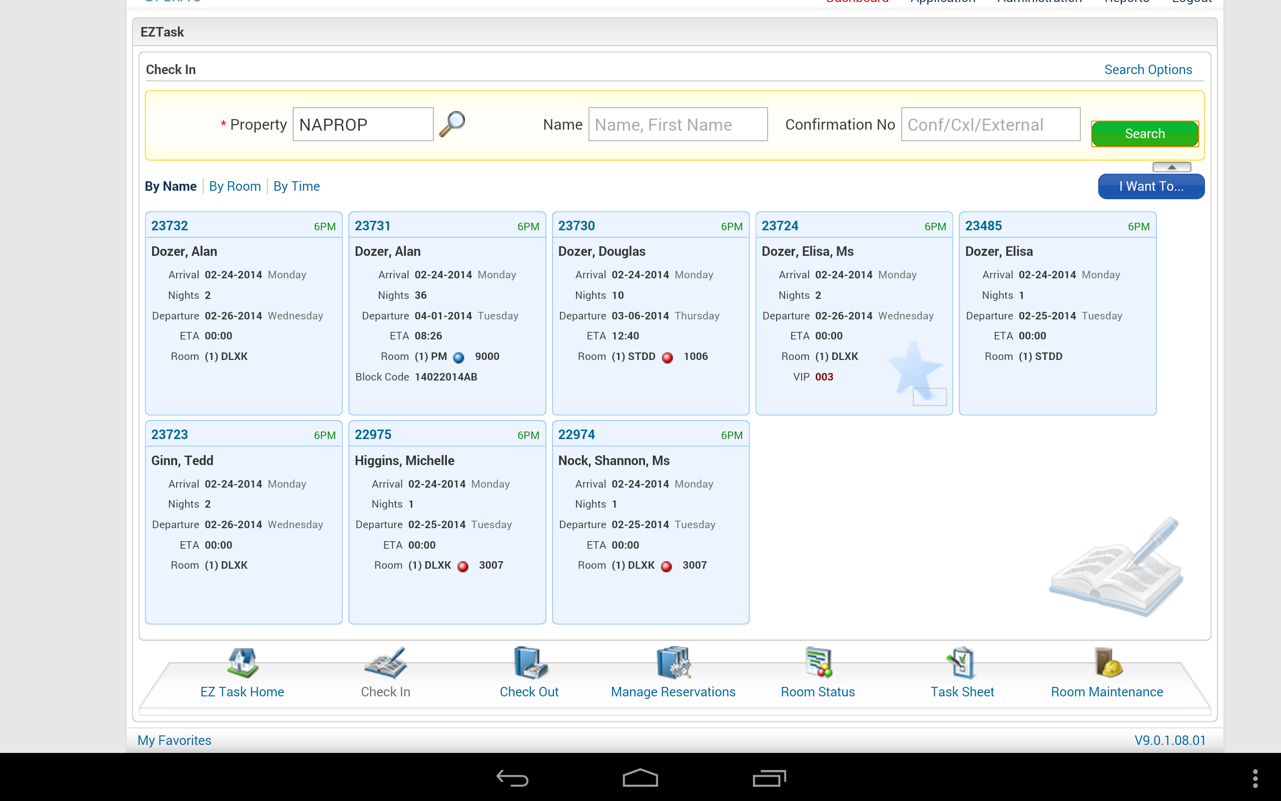 This application offers essential functionality at their fingertips, with multi-step “trains” to guide a Hotel’s Front Desk Agent through processes and workflows to help them complete tasks, utilizing simple, recognizable icons, indicators, and buttons for quick interaction while all the heavy lifting is done behind the scenes.