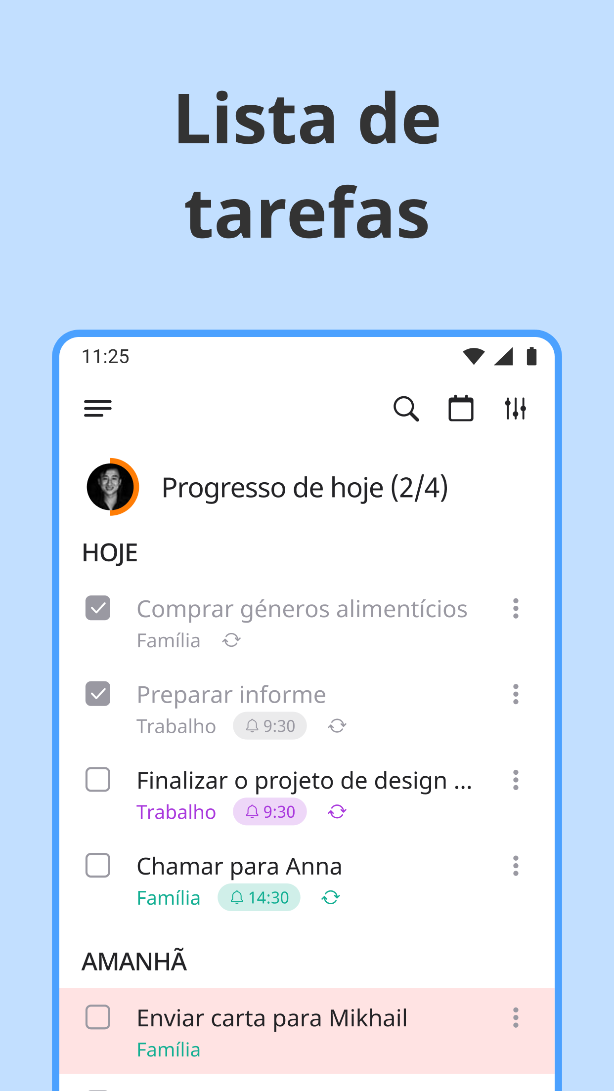 O Listta é um planejador de tarefas multifuncional com lembretes únicos, um conveniente organizador de tarefas, planos e anotações importantes. Com ele, você pode organizar os assuntos com facilidade, ele é um assistente pessoal no seu telefone.📱 Não tem muito mistério, seu uso é intuitivo. ⏰ O Listta vai ajudar você a começar rápido a planejar a sua vida, lembrar de assuntos e encontros importantes, realizar as tarefas a tempo e guardar todas as ideias e anotações em um só lugar. COM O LISTTA VOCÊ PODE: 🔸 Planejar os assuntos da forma mais conveniente para você, usando o tema claro ou escuro 🔸 Configurar lembretes com melodias exclusivas do Listta 🔸 Criar eventos e tarefas recorrentes 🔸 Criar seu cronograma diária junto com um calendário prático 🔸 Salvar todas as suas ideias, listas e pensamentos em anotações, usando pastas em topologia hierárquica 🔸 Trabalhar com tarefas, eventos e anotações diretamente no projeto 🔸 Utilizar filtros, configurar o nível de prioridade e adicionar descrições Além das funções do aplicativo Listta, você também pode aproveitar suas vantagens, tais como: ◾️ versatilidade do rastreador para planejamento, pois você pode usá-lo no dia a dia, no trabalho, na escola, para treinar, escrever planos pessoais, usar para ajudar na dieta, fazer listas de desejos, registrar datas e aniversários importantes, cronogramas diários, textos; ◾️ visualização confortável de tarefas, eventos e anotações relacionadas a um determinado projeto; ◾️ classificação por prioridade, nome e hora do lembrete para que você possa configurar sua lista de afazeres do seu jeito; ◾️ sincronização automática e backup de seus dados para que você não perca nada, por exemplo, ao trocar de dispositivo. Todas as informações são armazenadas na nuvem pelo Google Drive, que está vinculado à sua conta Google. Como o Listta simplifica sua vida? 🔹 você pode rapidamente começar a planejar, mesmo que nunca tenha feito isso, a interface do aplicativo é intuitiva 🔹 graças aos lembretes com melodias únicas e tarefas e tópicos recorrentes, você não esquecerá mais os aniversários de seus amigos ou um evento repentino que acontecerá daqui a uma semana 🔹 com uma seção de anotações com pastas e uma topologia hierárquica, você pode navegar facilmente por sua lista de anotações e manter informações importantes ao seu alcance 🔹você pode adicionar informações adicionais a cada tarefa ou evento, assim você com certeza não esquecerá os detalhes mesmo após algumas semanas 🔹 por meio de projetos, você pode focar em uma área específica, trabalhando com tarefas, eventos e anotações dentro do projeto Mas essas não são todas as vantagens do organizador do Listta, pois em breve adicionaremos os seguintes recursos: 1. Hábitos. Rastreador simples e intuitivo para adoção de novos hábitos 2. Metas A possibilidade de acompanhar a realização de seus objetivos, bem como construir um planejamento com base em seus verdadeiros desejos 3. Sincronização com os calendários da Google e Apple 4. Movimentação de arrastar e soltar tarefas de forma manual. Possibilidade de organizar seu cronograma diário sem a obrigação de um título, tempo ou prioridade 5. Tela compartilhada com tarefas e eventos relacionados ao dia de hoje 📱 6. Widgets Uma forma confortável de trabalhar com as suas tarefas na tela principal do seu smartphone. 7. Trabalho em equipe 👨👩👧👦 8. Versão do aplicativo para PC 🖥 9. Blog com práticas úteis, artigos e muito mais! Confortável. Simples. Fácil. 💫 Crie listas de tarefas, planeje seus dias, use o calendário, configure lembretes e faça anotações. Faça todo o necessário para organizar seu dia e melhore sua produtividade com o Listta! 🚀