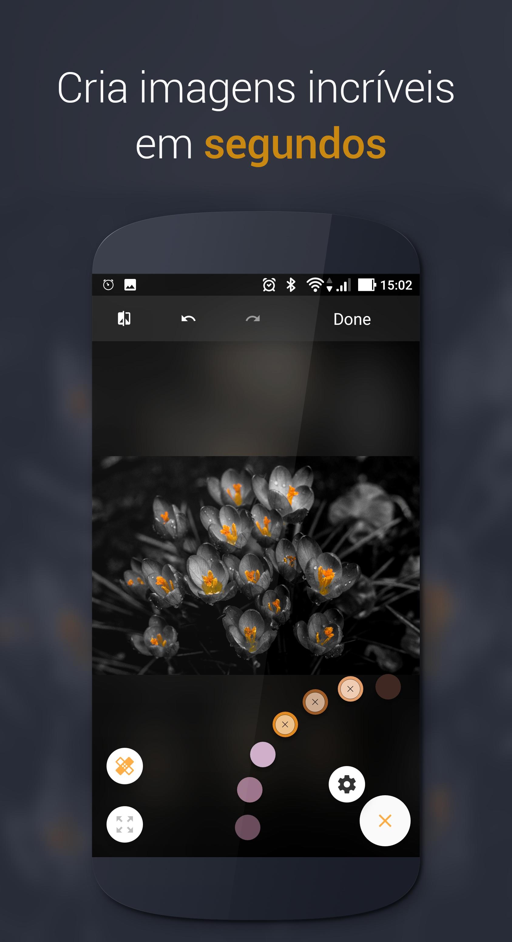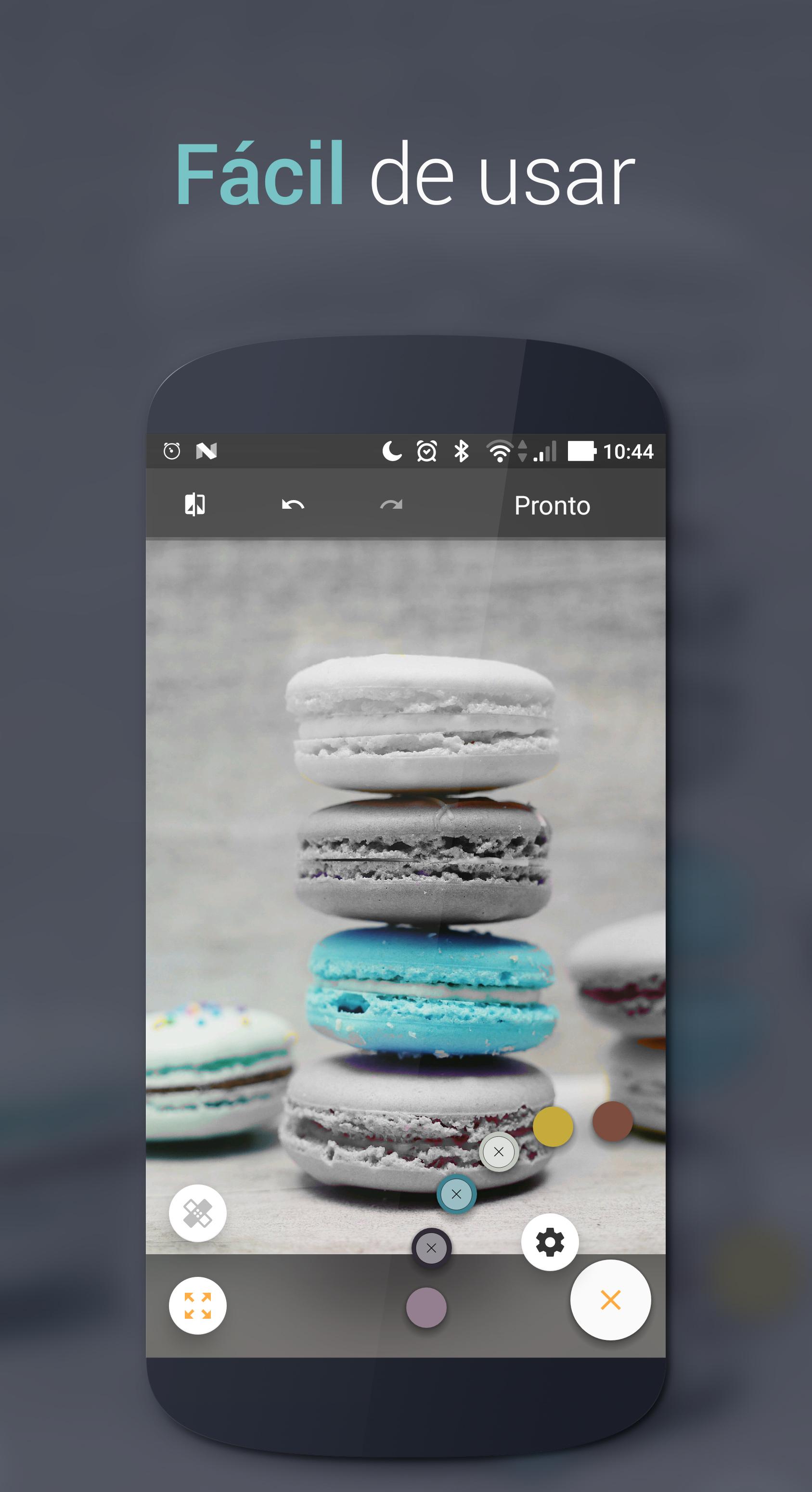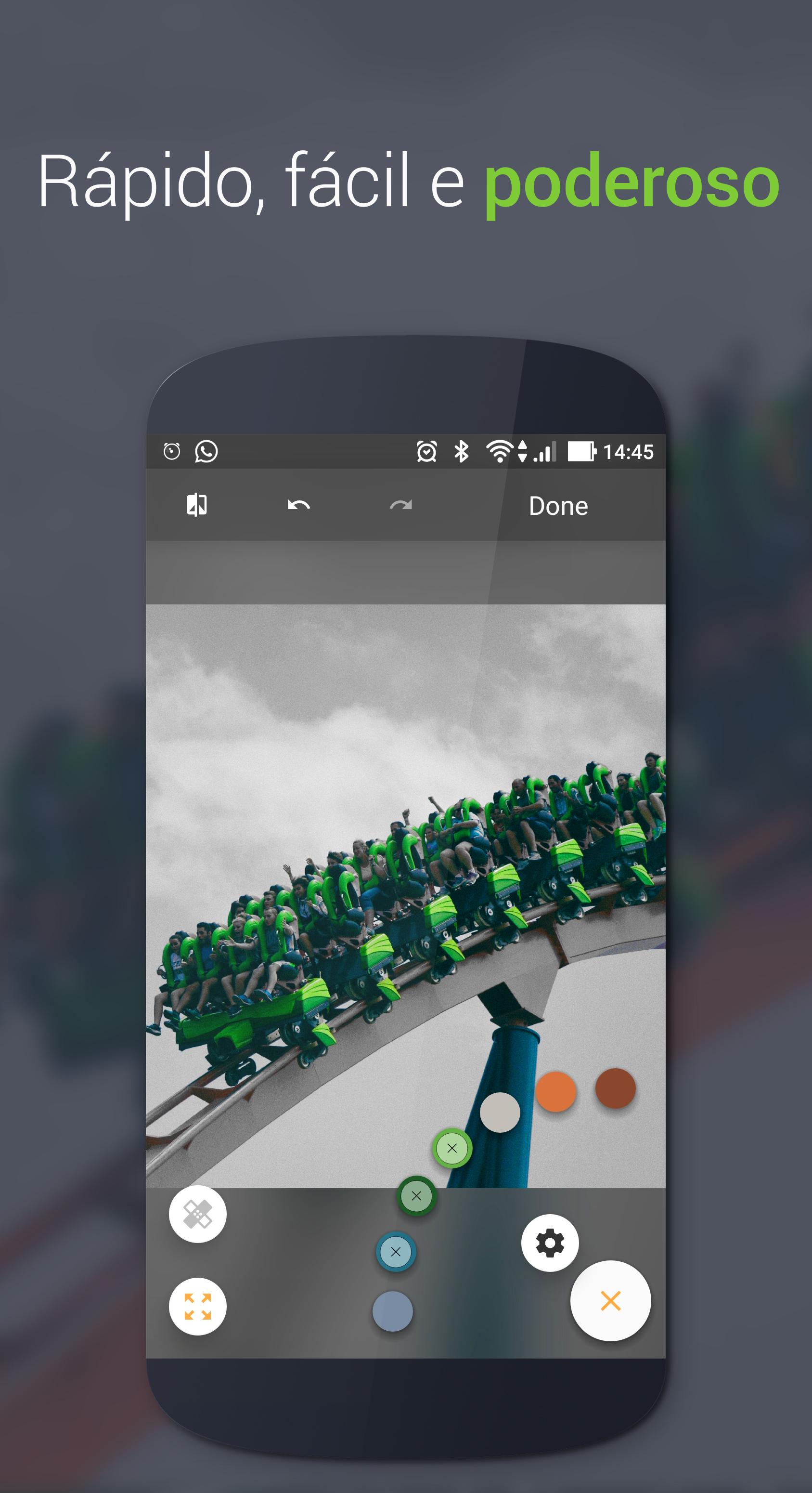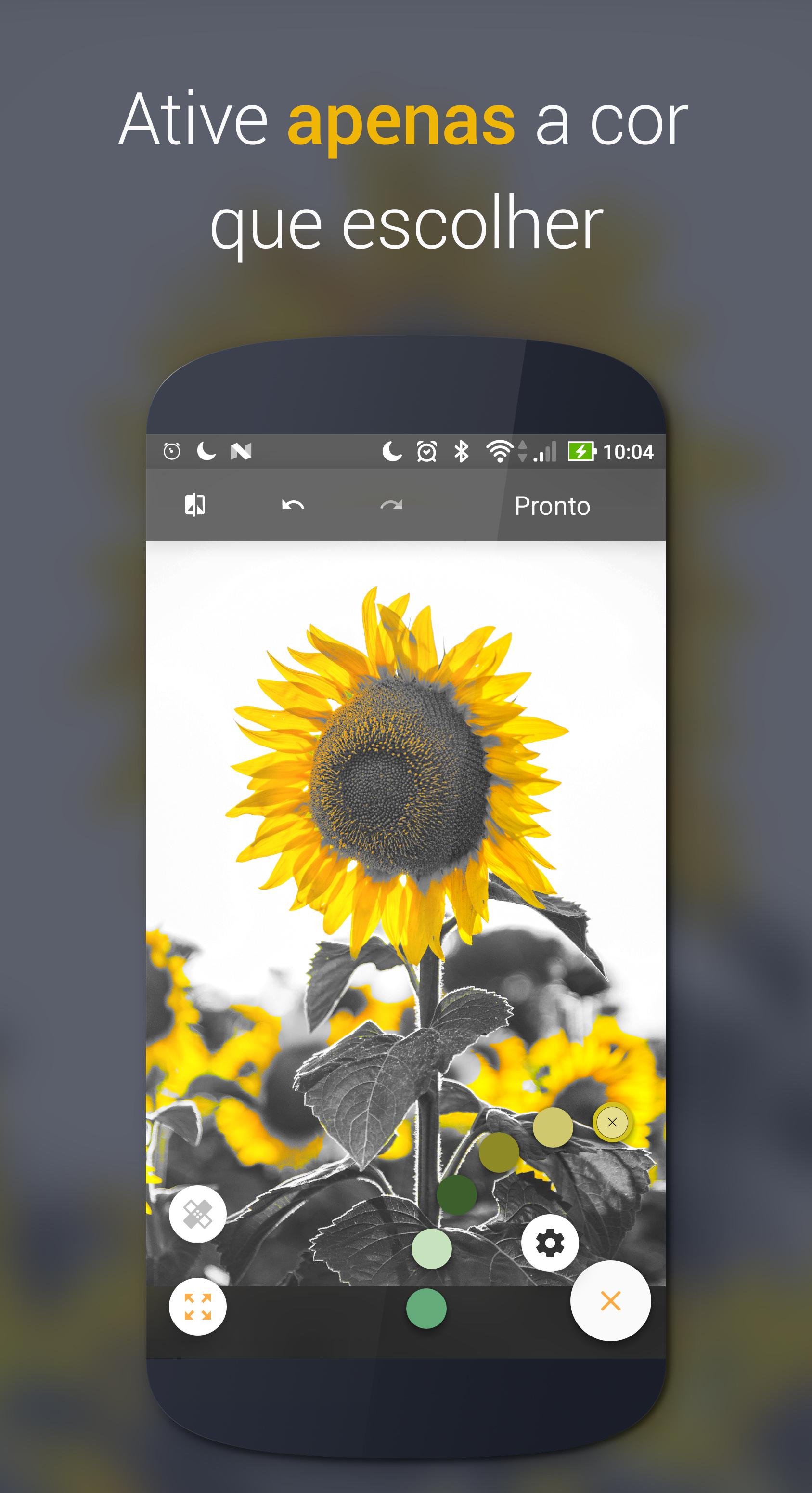 Ferramentas NOVO Alteração de cor: Altera as cores originais da foto. Aperte e segure sobre a bolinha da cor que quer mudar! (Limitado na versão grátis).