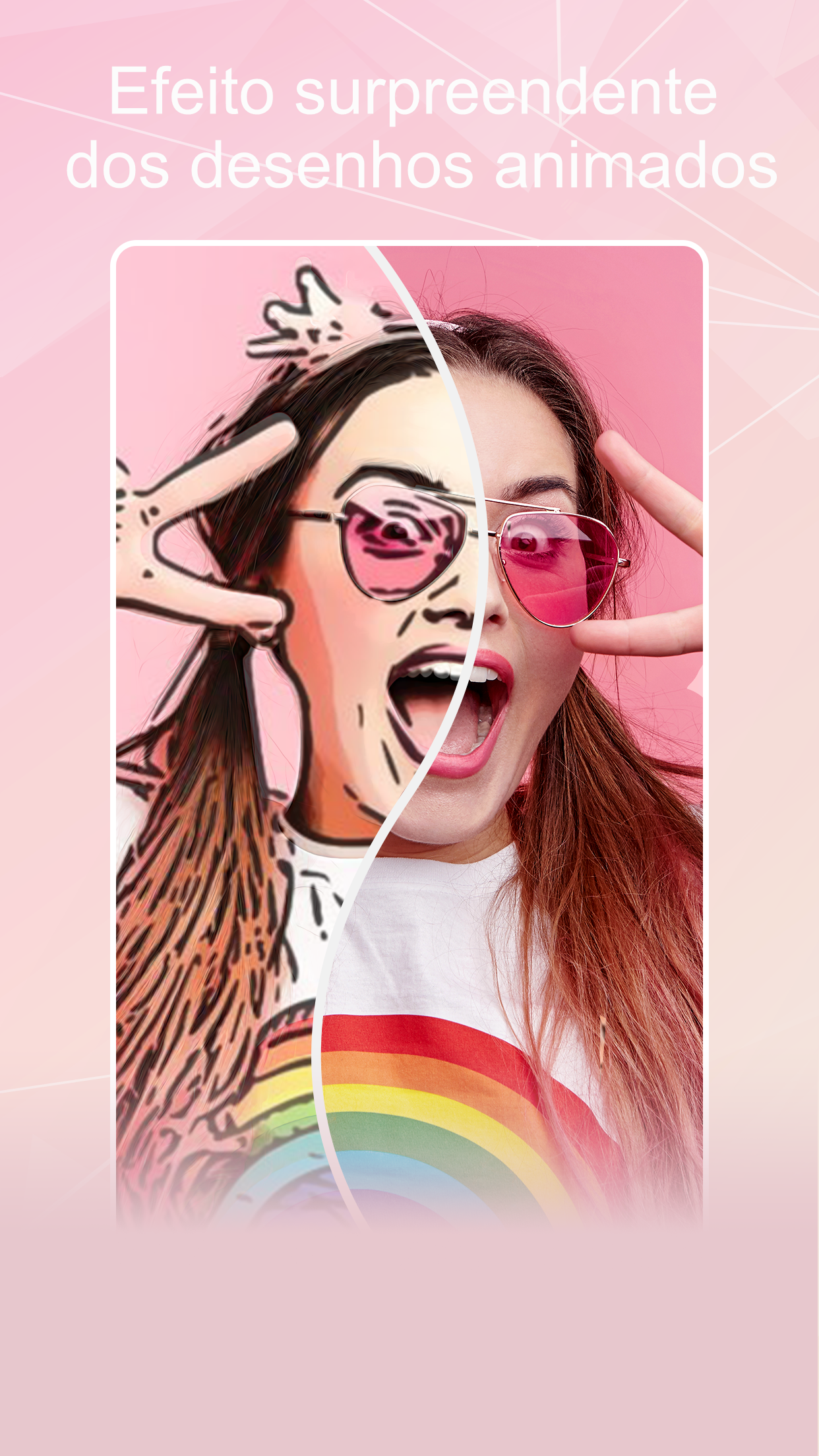 Baixe o aplicativo grátis e divirta-se transformando suas selfies em uma obra de arte usando apenas um toque mágico!