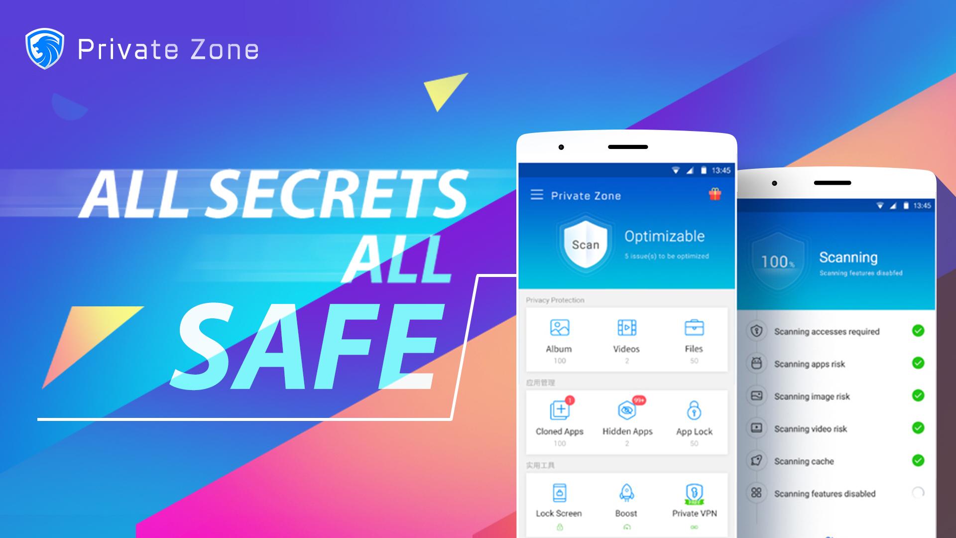 ★Junk Cleaner:free up your storage space.- Private Zone helps free up your storage space by removing junk, residual and cache files which slows down your phone.