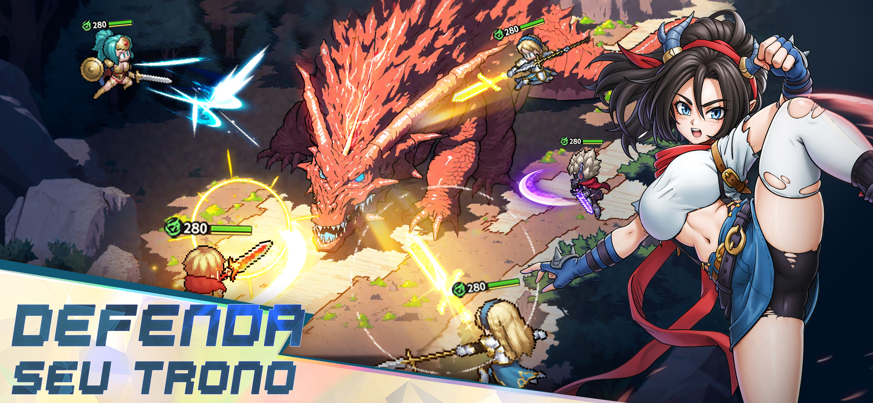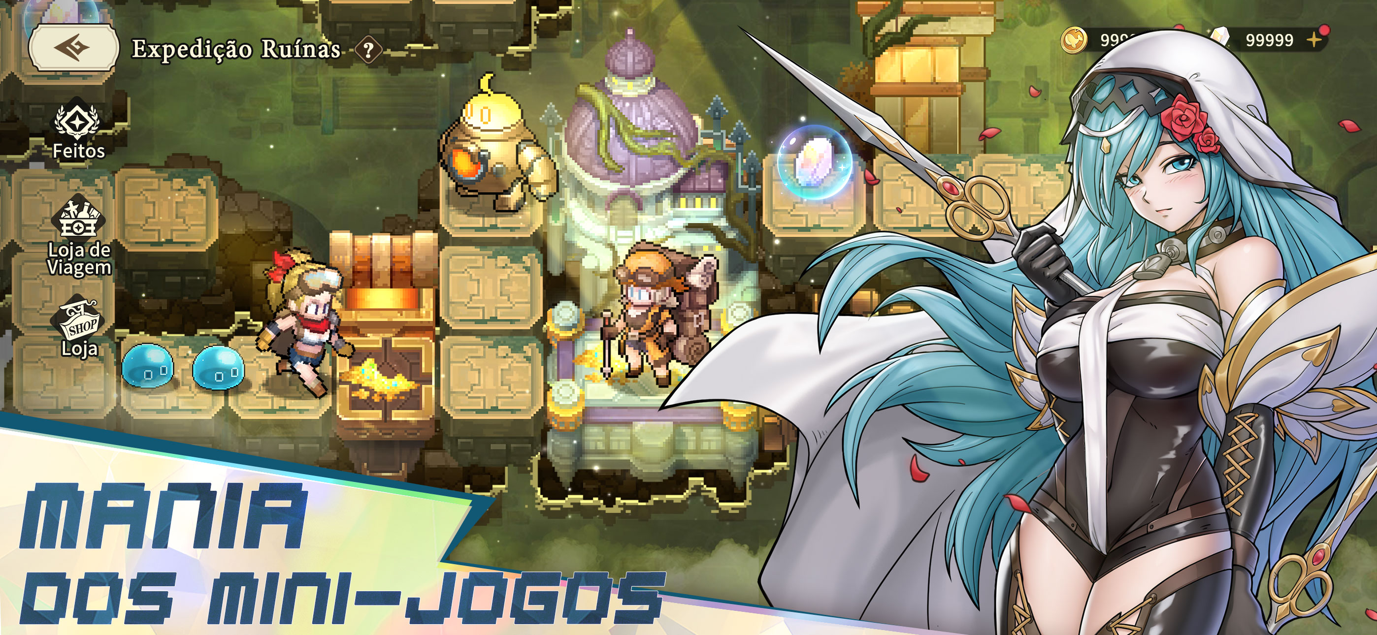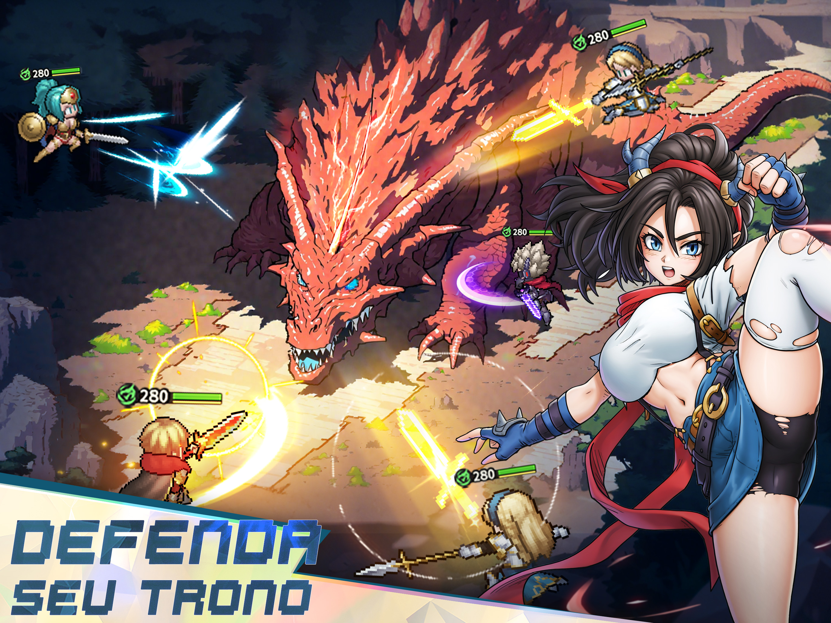 Este é um jogo clássico de RPG de pixel para celular. Mergulhe na nostálgica pixel art, nas batalhas estratégicas e em uma história envolvente. Construa sua formação, explore mundos vastos e conquiste masmorras desafiadoras. A aventura o aguarda na ponta de seus dedos! Recursos do jogo: 1. Uma obra-prima de pixel art retrô Uma homenagem impressionante aos RPGs 2.5D clássicos, com pixel art retrô meticulosamente trabalhado e efeitos deslumbrantes que criam uma aventura inesquecível e cheia de ação! 2. Diversão sem fim, sempre nova Com uma variedade de modos de jogo e toneladas de minijogos atualizados regularmente, sempre há algo novo para mantê-lo preso a esse jogo ocioso. Não importa o seu estilo de jogo, você o encontrará aqui - além de muitas recompensas! 3. Progressão de heróis sem esforço Nunca foi tão fácil subir de nível e aprimorar seus heróis de pixel. Com apenas um toque, você pode desbloquear caminhos de crescimento complexos - e a melhor parte? Você continuará ganhando recompensas infinitas e excelentes, mesmo quando estiver afk! 4. Heróis enormes e estratégia profunda Uma enorme coleção de heróis pode ser convocada para criar diferentes combos e sinergias de habilidades e, assim, virar a maré da batalha! Mecânica simples, mas estratégia profunda - fácil de aprender, difícil de dominar. Encontre a formação perfeita que se adapta ao seu estilo e derrote os inimigos! 5. Batalhas PVP e multijogador emocionantes Mergulhe em uma variedade de modos PVP, incluindo Guild Wars, Cross-Server Battles, Arena e Ranked Matches. Ganhe recompensas épicas e conquiste a glória suprema ao ganhar o respeito de todos os jogadores! Comunidade: Facebook: https://www.facebook.com/realmsofpixel Discord: https://discord.gg/X4kSGqTBzT