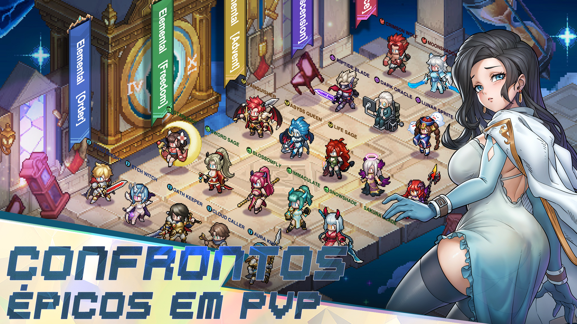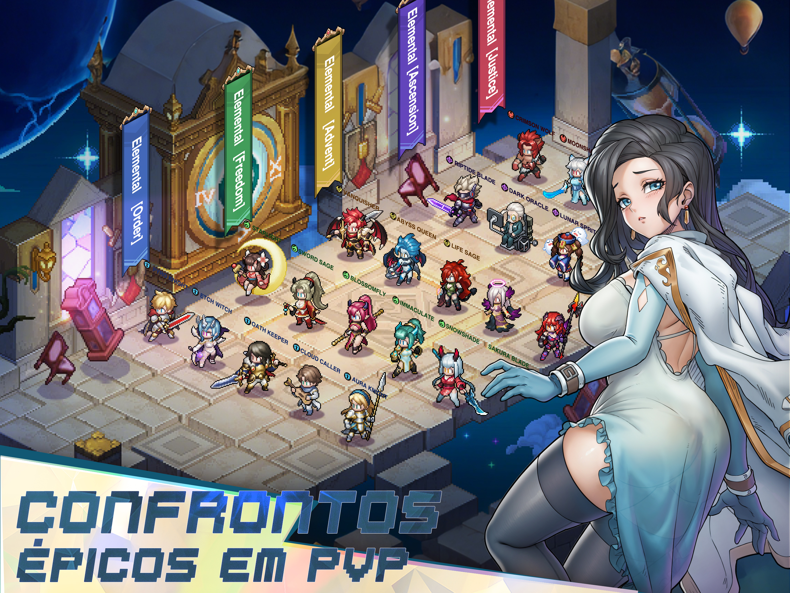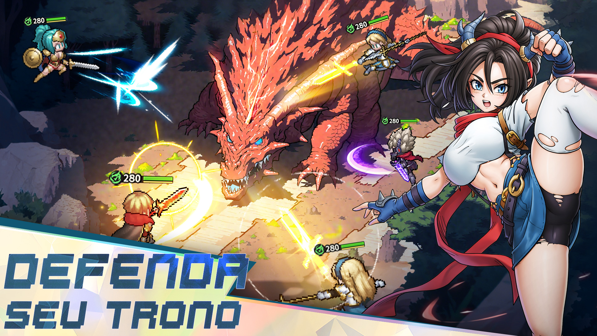 Este é um jogo clássico de RPG de pixel para celular. Mergulhe na nostálgica pixel art, nas batalhas estratégicas e em uma história envolvente. Construa sua formação, explore mundos vastos e conquiste masmorras desafiadoras. A aventura o aguarda na ponta de seus dedos! Recursos do jogo: 1. Uma obra-prima de pixel art retrô Uma homenagem impressionante aos RPGs 2.5D clássicos, com pixel art retrô meticulosamente trabalhado e efeitos deslumbrantes que criam uma aventura inesquecível e cheia de ação! 2. Diversão sem fim, sempre nova Com uma variedade de modos de jogo e toneladas de minijogos atualizados regularmente, sempre há algo novo para mantê-lo preso a esse jogo ocioso. Não importa o seu estilo de jogo, você o encontrará aqui - além de muitas recompensas! 3. Progressão de heróis sem esforço Nunca foi tão fácil subir de nível e aprimorar seus heróis de pixel. Com apenas um toque, você pode desbloquear caminhos de crescimento complexos - e a melhor parte? Você continuará ganhando recompensas infinitas e excelentes, mesmo quando estiver afk! 4. Heróis enormes e estratégia profunda Uma enorme coleção de heróis pode ser convocada para criar diferentes combos e sinergias de habilidades e, assim, virar a maré da batalha! Mecânica simples, mas estratégia profunda - fácil de aprender, difícil de dominar. Encontre a formação perfeita que se adapta ao seu estilo e derrote os inimigos! 5. Batalhas PVP e multijogador emocionantes Mergulhe em uma variedade de modos PVP, incluindo Guild Wars, Cross-Server Battles, Arena e Ranked Matches. Ganhe recompensas épicas e conquiste a glória suprema ao ganhar o respeito de todos os jogadores! Comunidade: Facebook: https://www.facebook.com/realmsofpixel Discord: https://discord.gg/X4kSGqTBzT