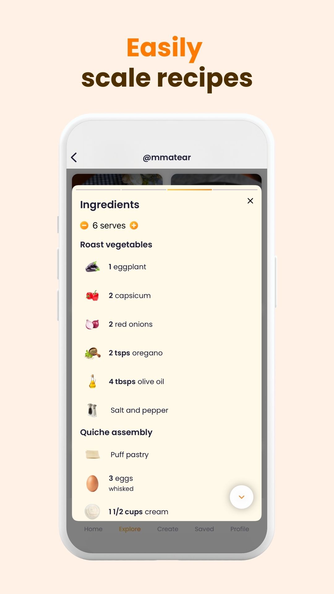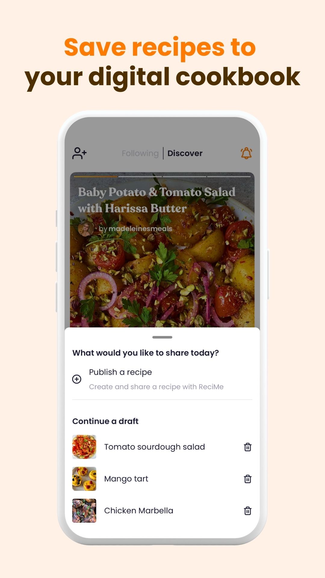 Salve facilmente as receitas que você descobre no aplicativo em seu livro de receitas pessoal para experimentar quando quiser.