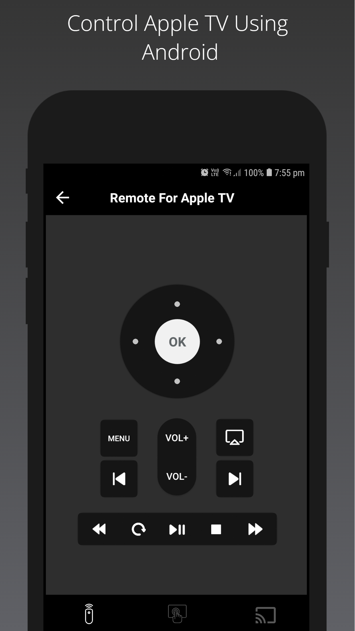 Remote For Apple TV é o aplicativo de controle remoto definitivo para sua Apple TV. Com um design elegante e intuitivo, é fácil de usar e repleto de recursos. Controle sua Apple TV com seu dispositivo Android -Reproduza, pause, retroceda e avance seus programas e filmes favoritos -Ajuste o volume -Mudar entradas -E muito mais! Remote For Apple TV é a maneira perfeita de controlar sua Apple TV no conforto do seu sofá. Baixe hoje e experimente a conveniência de um controle remoto sem fio! Recursos da Apple TV: - -Remoto Wi-Fi para Apple TV -Este aplicativo é um controle remoto para Apple TV usando Wi-Fi -Solução disponível para controle remoto para Apple TV -Você pode controlar o volume, navegação e reprodução - Faça o download hoje para facilitar o uso e o controle da Apple TV pelo telefone Android. Dispositivos suportados: - Apple TV (4k 3ª geração) - Apple TV (4k 2ª geração); - Apple TV (4k 1ª geração) - Apple TV (4ª geração HD); - Apple TV (3ª Geração); - Apple TV (2ª geração); Isenção de responsabilidade:- -Não estamos associados à Apple e este aplicativo não é um produto oficial da Apple.