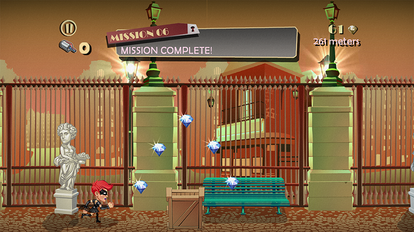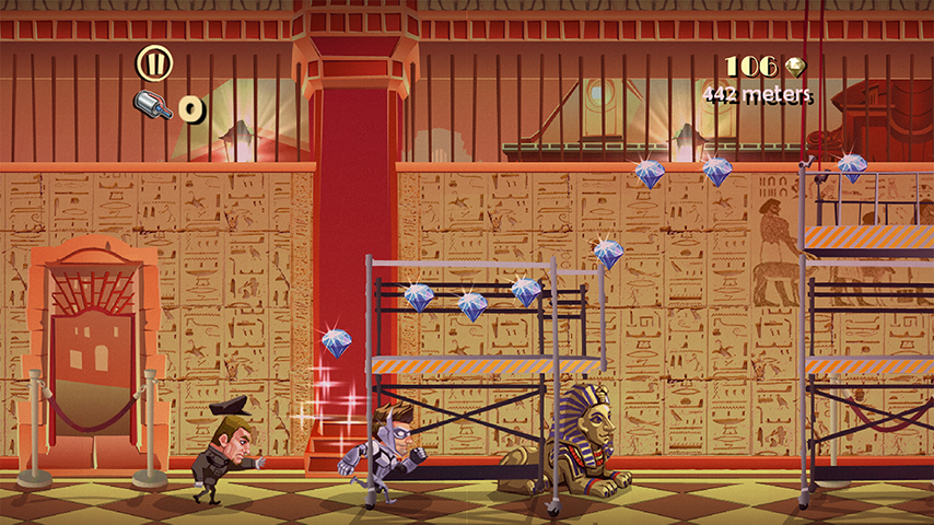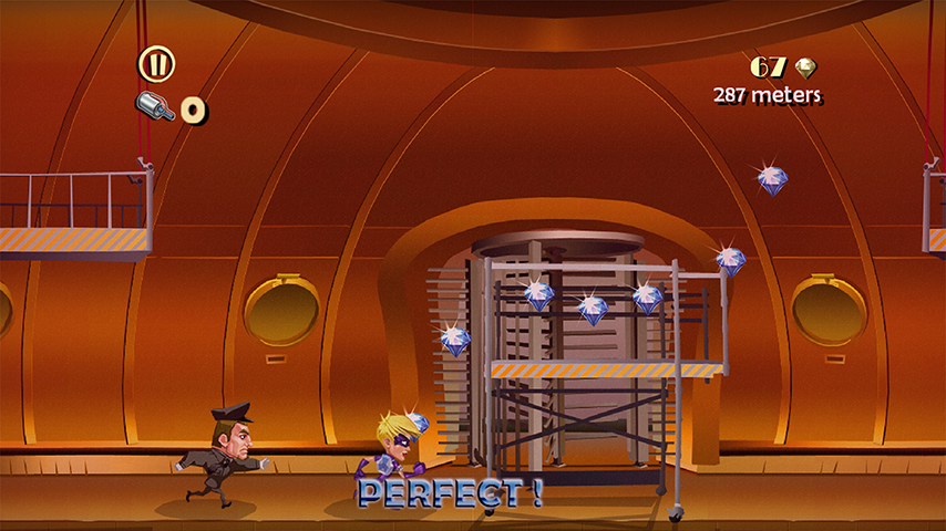 Anyway the goal remains the same: grab a lot of gems running on the longest distance possible while avoiding of getting busted: