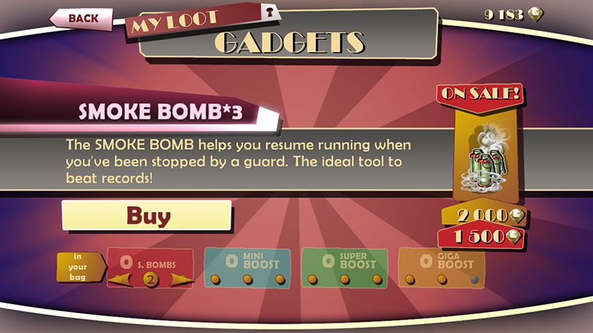 • Use numerous gears in your escape: smoke bombs and various boosts;