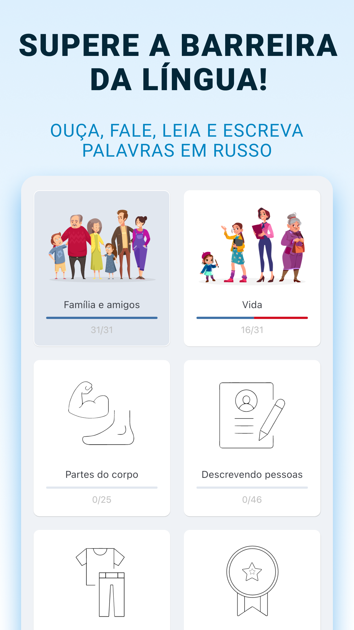 Estude palavras em russo no aplicativo Russo para iniciantes. Estudar Russo nunca foi tão fácil e simples!