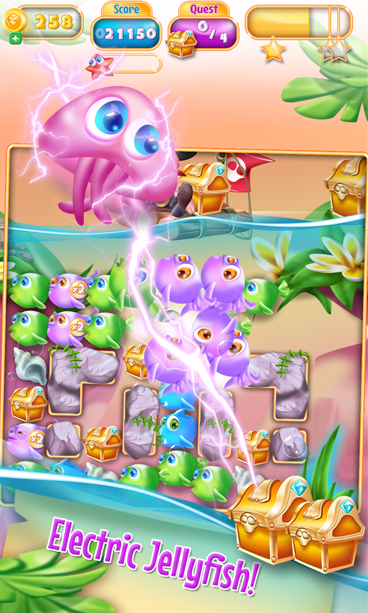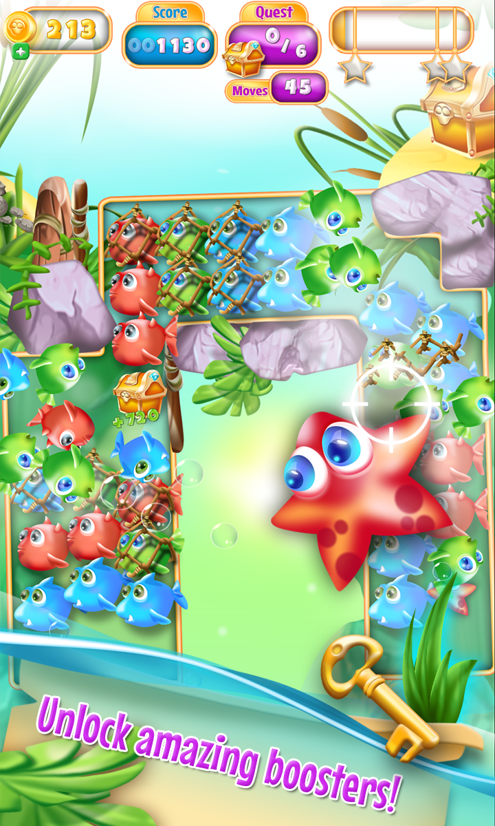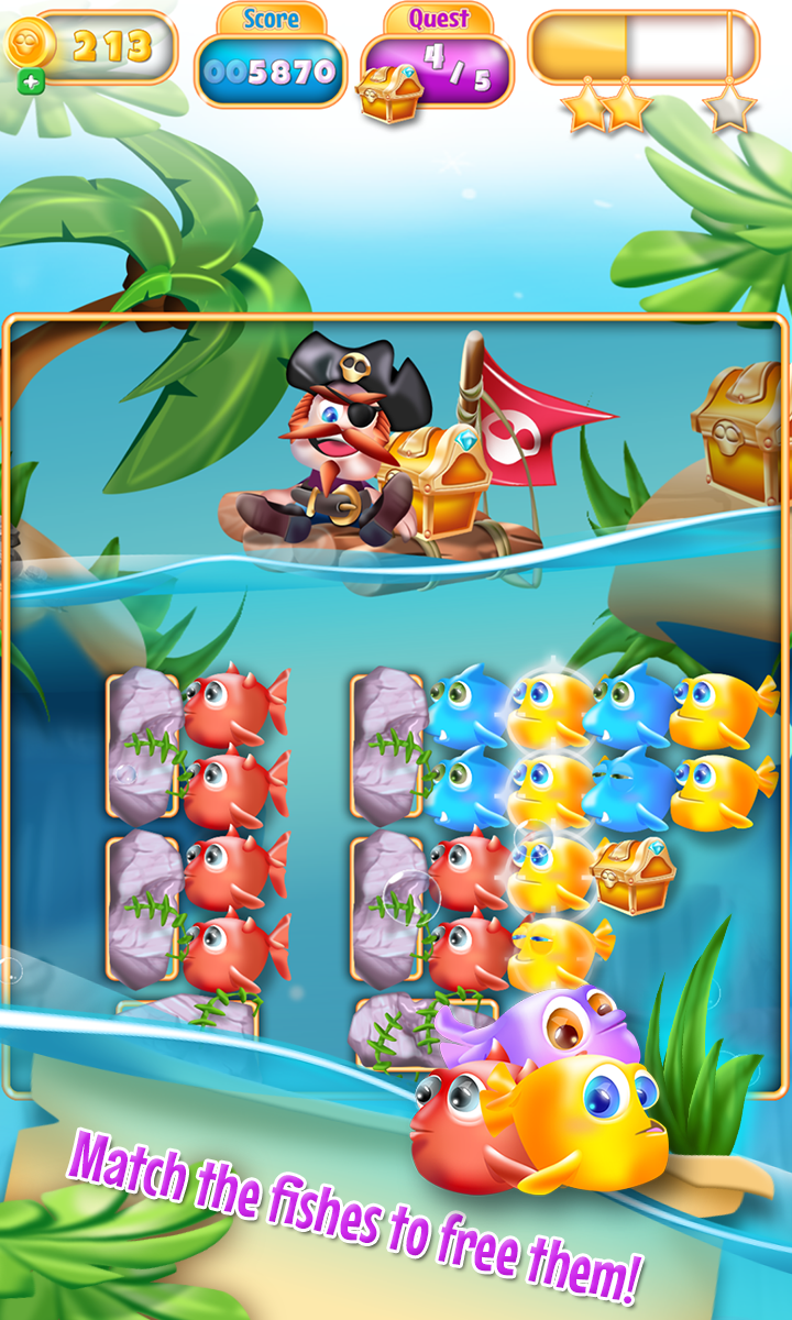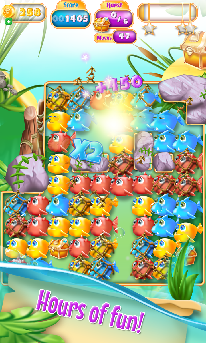 Match two or more fishes of the same color to free them and uncover the treasures in hours of popping fun!