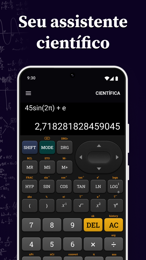 O Calculadora Científica é um poderoso aplicativo de calculadora projetado para atender às demandas de estudantes, profissionais, engenheiros e matemáticos. Com sua ampla gama de funções e interface intuitiva, esta calculadora científica é sua solução ideal para resolver problemas matemáticos complexos com facilidade. Equipado com capacidades matemáticas avançadas, nossa calculadora científica permite aos usuários realizar uma ampla gama de cálculos que abrangem aritmética, álgebra, trigonometria, cálculo e muito mais. Seja para resolver equações, plotar funções ou analisar conjuntos de dados, esta calculadora oferece precisão e eficiência incomparáveis em cada etapa do processo. Com uma tela de alta resolução, o aplicativo de calculadora oferece visibilidade cristalina de expressões matemáticas, gráficos e resultados, garantindo que os usuários possam ler e interpretar seus cálculos facilmente. O layout ergonômico do teclado facilita a entrada perfeita, permitindo que os usuários insiram equações e comandos com precisão. Além de seu poder de cálculo, a calculadora científica oferece uma série de recursos convenientes projetados para aumentar a produtividade e a usabilidade. Estes incluem Trigonometria: Seno (sen), Cosseno (cos), Tangente (tan) Funções Hiperbólicas: Seno hiperbólico (sinh) Constantes: Pi (π), Exponencial (e) Funções Logarítmicas: Logaritmo base 2 (log2), Logaritmo natural (ln), Logaritmo comum (log) Exponenciação: Elevação ao quadrado, cubo e a qualquer potência Fatorial: Cálculos de fatorial (X!) Raízes: Raiz quadrada, raiz cúbica e mais Operações Aritméticas Básicas: Realize todas as operações fundamentais com facilidade - adição, subtração, multiplicação e divisão. Funções de memória para armazenar e recuperar valores Modo paisagem e retrato Seja você um estudante dominando conceitos matemáticos complexos, um engenheiro resolvendo problemas do mundo real ou um pesquisador explorando os limites da investigação científica, o Calculadora Científica é o aplicativo essencial que você precisa para se destacar em seus empreendimentos. Experimente o poder, precisão e desempenho de nossa calculadora hoje e desbloqueie um mundo de possibilidades matemáticas.