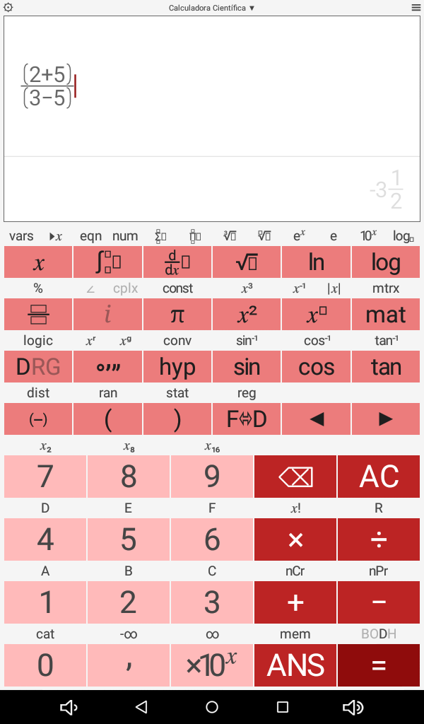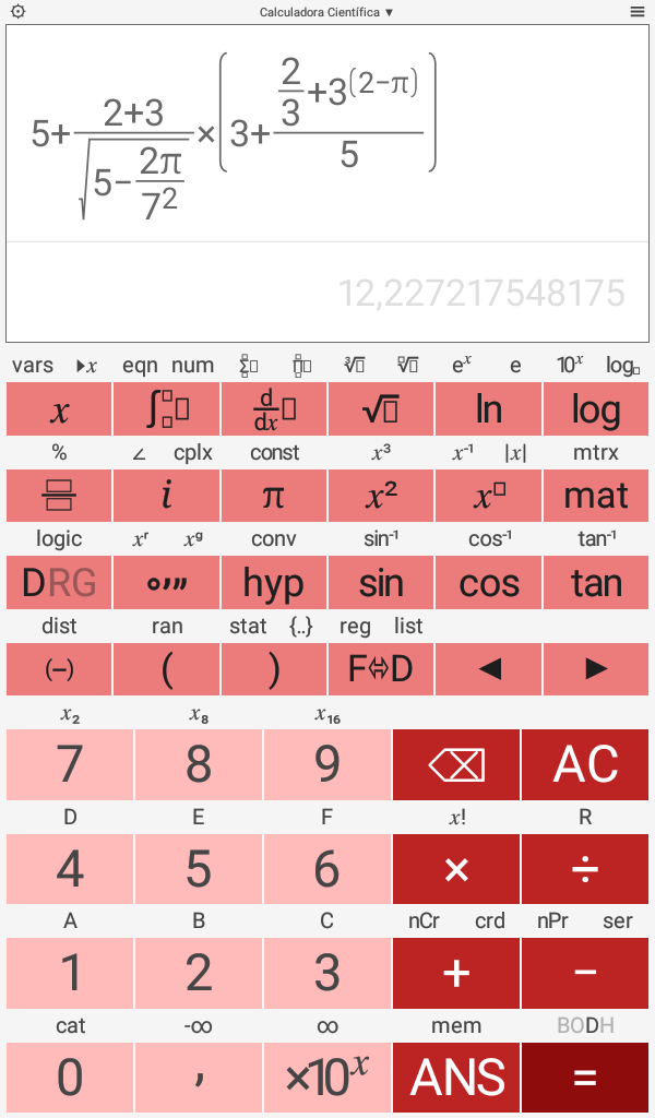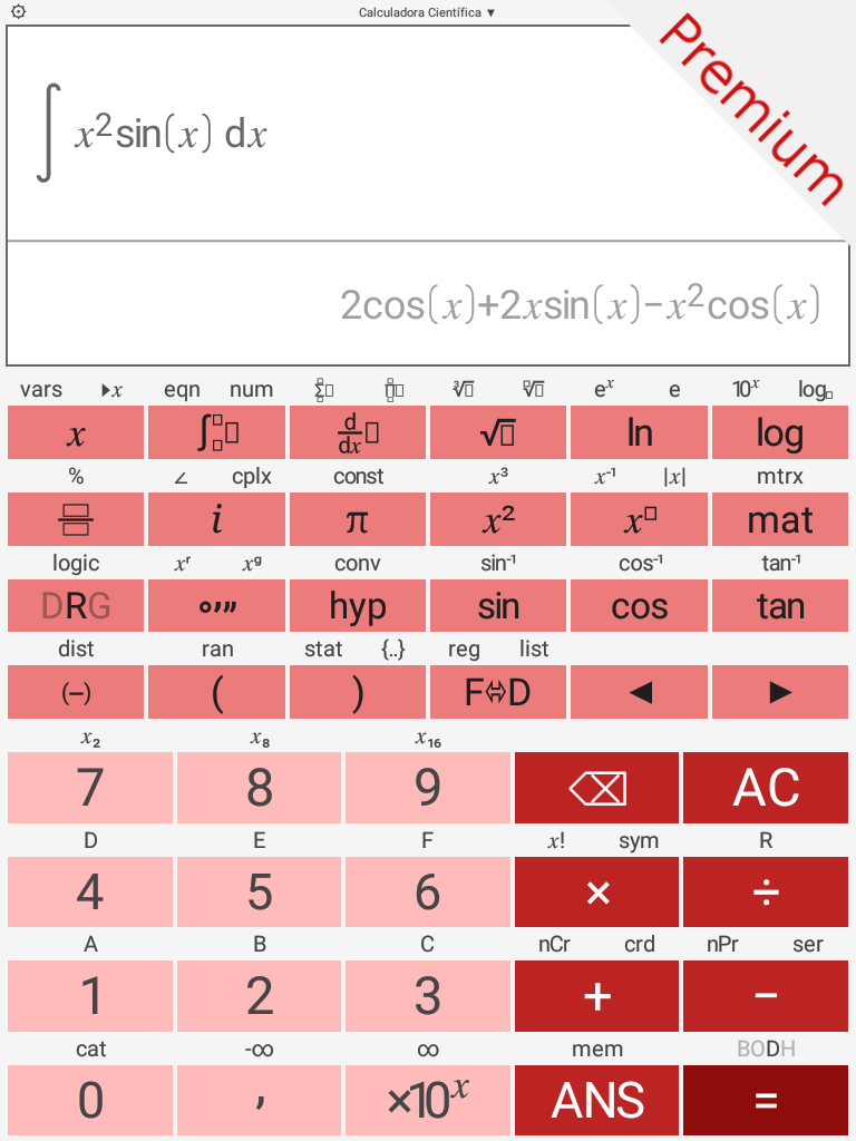 Esta calculadora científica gratuita oferece um número de características úteis, permitindo que você realize cálculos avançados. Seu design simples e intuitivo faz dele um aplicativo fácil de usar. A calculadora tem todas as funções que seriam esperadas de uma calculadora científica e uma série de características mais avançadas também, incluindo números complexos e matrizes. Os algoritmos super-rápidos permitem rolar e fazer o zoom dos gráficos 2D e 3D em tempo real, utilizando a tela sensível. Desenha gráficos de equações implícitas em 2 e 3 dimensões. p.ex. x²+y²+z²=5². Desenha gráficos de desigualdades em 2 dimensões. p.ex. 5x+2y<15. Desenha gráficos de funções de uma variável complexa. Mostra até 5 gráficos na mesma tela. Analisa ativamente as funções, para melhor representação gráfica de funções 2D com pontos de singularidade. p.ex. y=tan(x) o y=1/x. Intersecções em gráficos 2D. A calculadora é customizada permitindo que você mude as cores da tela, do fundo e de todos os botões individuais, permitindo que você personalize sua aparência. Há também uma versão sem anúncios deste aplicativo As características desta Calculadora Científica incluem: • gráficos polares, esféricos e cilíndricos. • operações matemáticas básicas de adição, subtração, multiplicação, divisão, resto e potenciação. • muda entre saída decimal e surd. • expoentes e radiciações. • logaritmos de base 10, e (logaritmo natural) e base n. • funções trigonométricas e hiperbólicas e suas inversas. • os números complexos podem ser inseridos e mostrados em forma binomial ou polar. • todas as funções válidas funcionam com números complexos, em modo complexo, incluindo as funções trigonométricas e suas inversas, quando em radianos. • Calcule o determinante, inverso e transposição de uma matriz. • Matrizes de até 10×10. • Decomposição LU. • Produto vetorial e produto escalar. • Integração numérica. • Integrais duplos e integrais triplos. • Diferenciação. • Derivadas segundas. • Derivadas parciais. • Div, grad e curl. • Escolha a precedência (ordem das operações) para multiplicação implícita: 2÷5π → 2÷(5×π) 2÷5π → 2÷5×π • 26 constantes científicas. • 12 Constantes matemáticas. • conversões de unidade. • fatoriais, permutações e combinações. • duplo fatorial. • conversões de graus, minutos, segundos, radianos e grados. • frações e porcentagens. • função absoluto. • Função gama. • Função beta. • Funções piso, teto, Heaviside, sgn e rect. • Solucionador de equações. • Regressões. • Fatoração em números primos. • Conversões de base-n e funções lógicas. • 10 cálculos anteriores armazenados e re-editável. • botão de resultado anterior (ANS) e 5 memórias distintas. • geradores de números aleatórios, incluindo distribuição normal, poisson e binomial, bem como distribuições uniformes. • calculadora de distribuição de probabilidade para distribuições normais, poisson, binomial, student-t, F, chi-quadrado, exponencial e geométrica. • Estatísticas de uma e duas variáveis, intervalos de confiança e testes qui-quadrado. • separador decimal usuário definido (ponto ou vírgula). • saída automática, científica ou de engenharia. • opcional separador de milhares. Escolha entre espaço ou vírgula / ponto (depende do marcador decimal). • precisão variável de até 15 algarismos significativos. • tela deslocável permitindo cálculos arbitrariamente longos para ser inserido e editado.