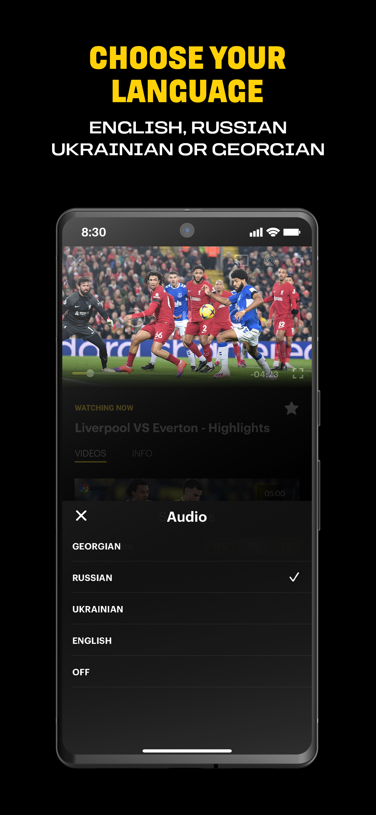 Sintonize de todo o mundo e desfrute de uma experiência personalizada de transmissão de futebol ao vivo. Dependendo de suas preferências e necessidades, existem diferentes planos de assinatura disponíveis, permitindo que você assista futebol ao vivo na TV em seu celular ou dispositivo inteligente, ou acompanhe os resultados e destaques do futebol acessando as imagens gravadas. Você também pode escolher entre várias configurações de idioma, incluindo inglês, ucraniano, russo ou georgiano.
