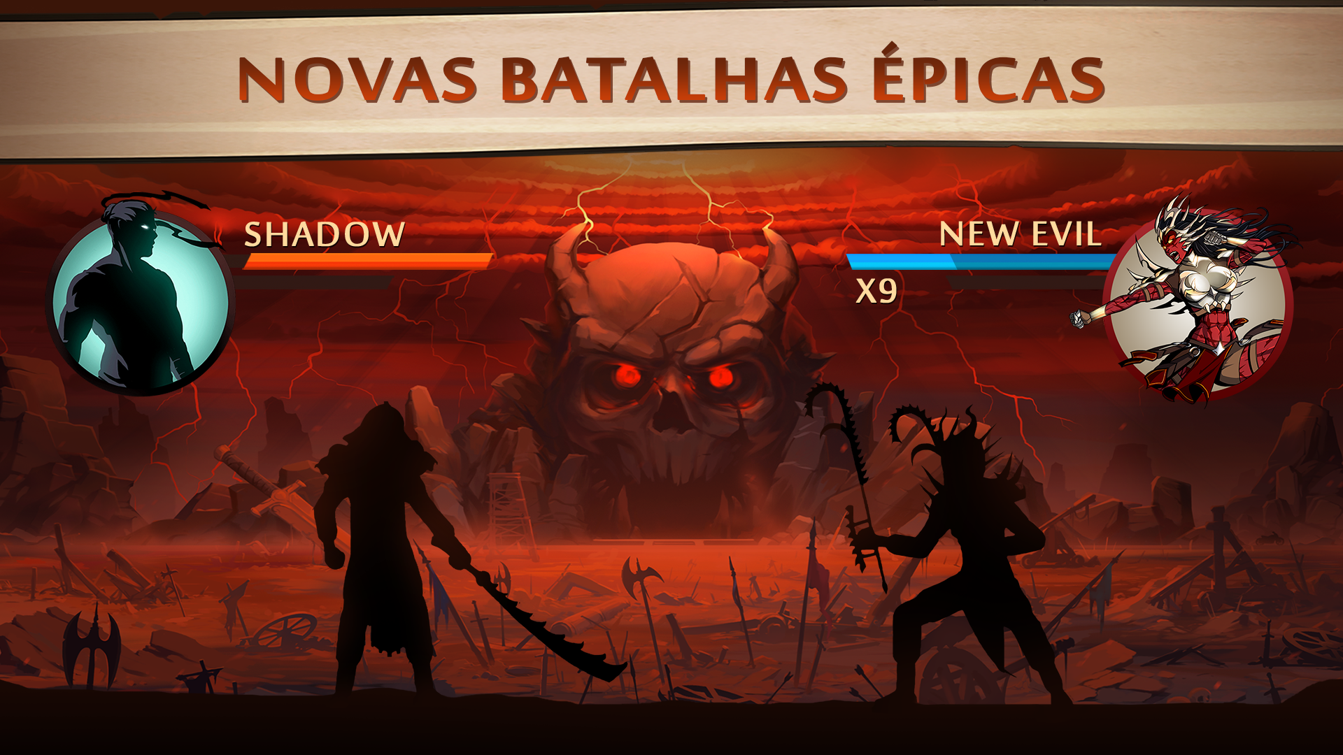 A sequencia do sucesso do facebook com mais de 40 milhões de usuários! Shadow Fight 2 é uma mistura entre RPG e os classicos jogos de luta. Este jogo permite que equipe seu lutador com incontaveis armas letais e armaduras raras, contendo dezenas de animações e golpes de artes marciais reais! Destrua seus inimigos, humilhe os chefes demônios, e seja o responsavel por fechar o Portão das Sombras.Você é capaz de chutar, socar, pular e golpear para abrir caminho a vitória? Só ha uma maneira de descobrir! - Mergulhe em sequencias de combate épicos, renderizadas com detalhes impressionantes que reproduzem a movimentação real de lutadores neste novo sistema de animação. - Arrase seus inimigos com controles intuitivos, graças a nova interface de luta exclusiva para telas de toque. - Entre no "Submundo" e lute com seus amigos contra chefes terríveis! - Viaje por 6 mundos distintos enfrentando demônios neste jogo cheio de ação, carregado de adrenalina e que conta com detalhado sistema de combate com toque de RPG imersivo e história intrigante. -Personalize seu lutador com espadas épicas, nunchakus, armaduras, poderes magicos e mais. Shadow Fight 2. Que comece a batalha!