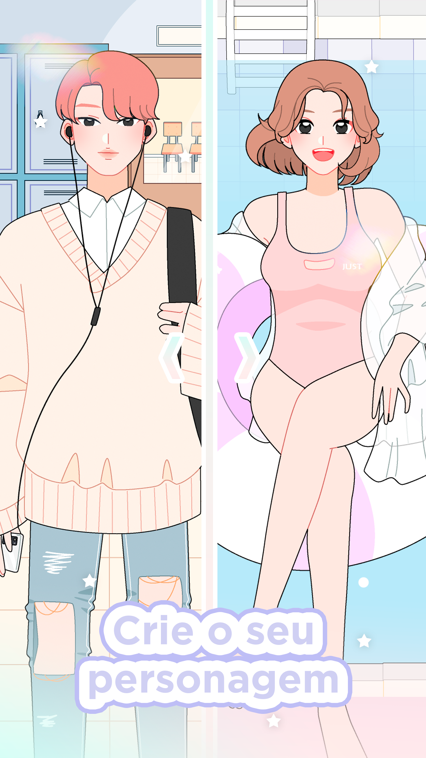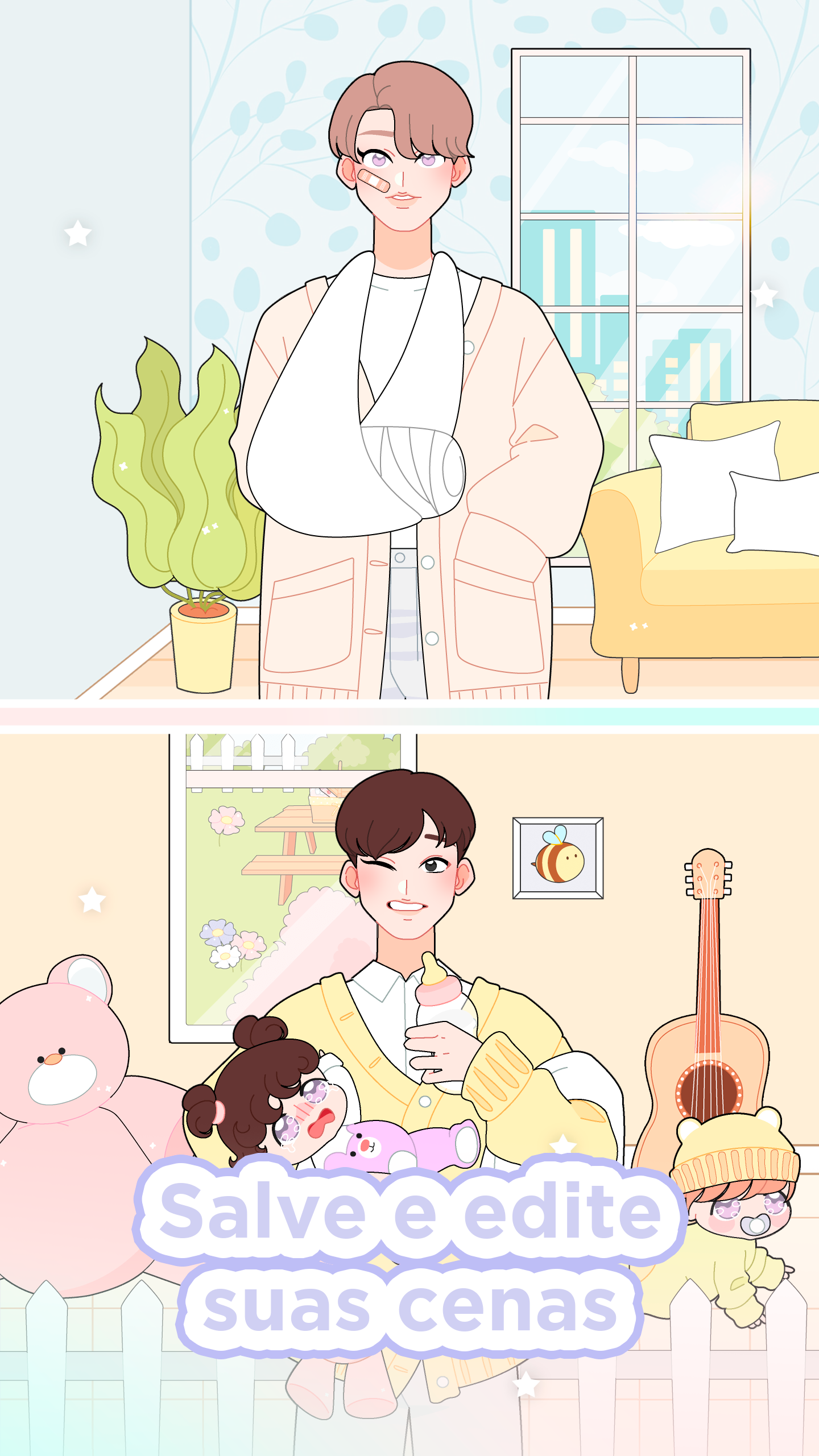 Divirta-se com diferentes roupas para personalizar, Shining Star traz uma atmosfera relaxante e super estética onde você pode decorar seus personagens com os mais diversos itens, dos mais fofos aos mais estilosos! As estrelas brilhantes estão esperando por você para personalizá-las e dar vida aos cenários com vários itens! Crie histórias únicas com expressões, cenários, objetos, roupas, animais e até balões de fala! Crie, salve ou edite quando quiser e dê vida à sua imaginação com uma galeria no jogo! Transforme seu ídolo favorito na estrela mais bonita de todos os tempos e compartilhe com seus amigos nas redes sociais! Shining Star é um criador de avatar e história, você pode criar histórias, quadrinhos e até seu próprio webtoon, com muitos itens de personalização, você pode soltar sua criatividade e personalizar cada parte de seus personagens! Divirta-se criando do seu jeito! Jogue o gacha e ganhe roupas incríveis para personalizar seus ídolos neste criador de bonecas, mude de estilo quando quiser, vista seus personagens de forma Kawaii, estilosa ou até casual! Salve suas criações em sua própria galeria e compartilhe com seus amigos! Escolha suas roupas favoritas, escolha um penteado e faça seu próprio personagem de anime! Personalize todo o cenário e crie histórias incríveis com seus personagens, faça seus próprios mangás e webtoons, com muitas expressões e objetos para decorar seus cenários e seus personagens! Não se esqueça de adicionar os bichinhos fofos e balões de fala para dar vida às suas cenas! Shining Star é offline e grátis para jogar. Se você adora criar personagens em jogos de criação de avatar e criador de anime, ficará encantado com a variedade de itens para personalizar seus ídolos e criar suas próprias histórias de romance e até mesmo da vida escolar! Crie sua própria história e salve-a na galeria do jogo ou compartilhe-a com seus amigos! Vista sua estrela brilhante do seu jeito, os ídolos estão esperando por você!