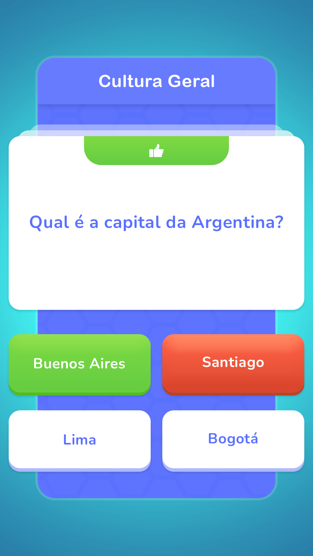 QuizMaster: conhecimento geral é um jogo de perguntas envolvente que testa seu conhecimento em vários campos. Explore um mundo cheio de informações interessantes e divirta-se com este jogo educativo. Este jogo de perguntas interativo oferece uma ampla variedade de perguntas e desafios de conhecimentos gerais! A maior vantagem? O jogo pode ser acessado offline! Assim, você pode testar seus conhecimentos a qualquer hora, em qualquer lugar, sem se preocupar com uma conexão com a internet. Com tradução disponível em 10 idiomas diferentes, incluindo inglês, francês, espanhol, romeno, português, italiano, alemão, polonês, russo e turco, este jogo permite que você jogue no seu idioma preferido. Características principais: Diversos modos de jogo: QuizMaster: conhecimento geral oferece uma variedade de modos de jogo cativantes para testar suas habilidades e conhecimentos. perguntas de conhecimento geral: teste seu conhecimento em vários domínios, como geografia, capitais mundiais, biologia, arte, ciência, filmes, música, matemática, mitologia, astronomia, história e esportes. Reconheça o país por sua forma: explore mapas-múndi e identifique países com base em seus contornos. Reconhecer o logotipo: Você tem conhecimento sobre marcas e logotipos? Teste suas habilidades e adivinhe os logotipos populares. Reconhecer a bandeira: Examine as bandeiras nacionais e adivinhe o país correto. Capitais mundiais: teste seu conhecimento sobre as capitais de todo o mundo e mostre o quanto você as conhece. Matemática: exercícios de adição, subtração, multiplicação e divisão para desafiar suas habilidades matemáticas. Acesso offline: O jogo pode ser jogado sem conexão com a internet. Você pode aproveitá-lo durante viagens ou em locais onde não tenha acesso a uma rede. Traduzido em 10 idiomas: Independentemente do seu idioma preferido, QuizMaster: conhecimento geral permite que você jogue em seu idioma nativo ou em qualquer outro idioma que você conheça. Baixe QuizMaster: conhecimentos gerais agora e prepare-se para se divertir, aprender coisas novas e se tornar um mestre em conhecimentos gerais! Garantimos que este jogo educativo irá cativá-lo e desafiá-lo em cada rodada.