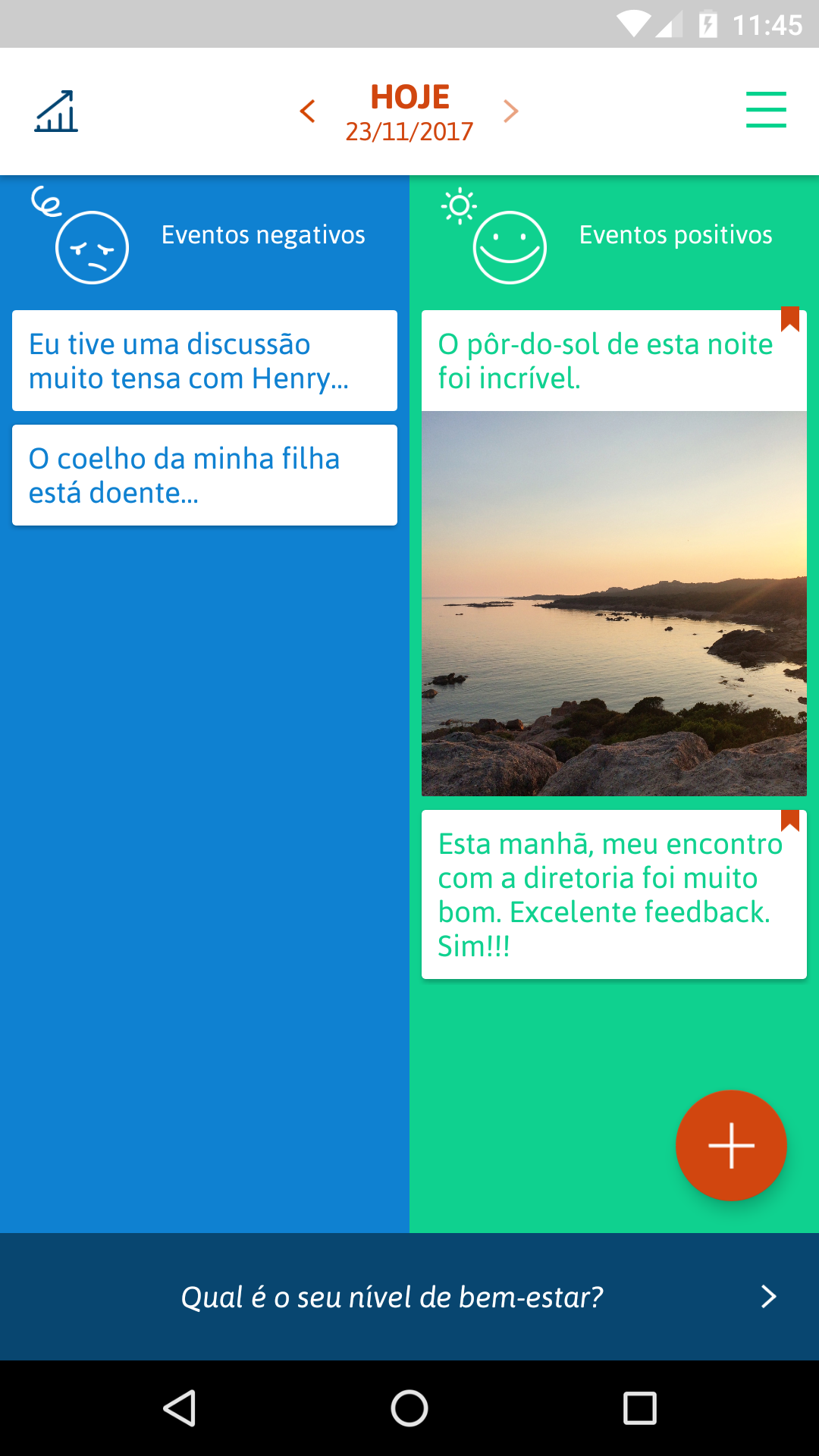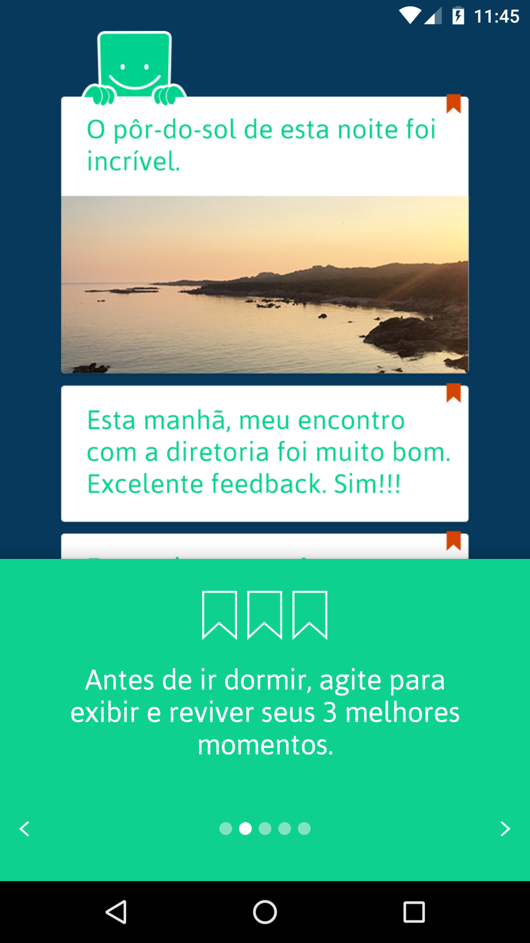 Smylife, um aplicativo simples para melhorar o seu bem-estar. Quando usado diariamente, o aplicativo Smylife ajuda a reforçar sua positividade e aumentar seu bem-estar significativamente. Você sentirá os efeitos após 2 ou 3 semanas, reduzindo tensão e ansiedade. Inspirado por um simples exercício usado por muitos treinadores e profissionais de psicologia positiva, este aplicativo lhe ajuda a reduzir o seu estresse. Toda noite: - Anote as experiências negativas e positivas do seu dia - Concentre-se nos três melhores antes de ir dormir. Smylife: um método testado e aprovado, facilitado digitalmente Com Smylife, o seu smartphone substitui o diário: - Anote suas experiências do dia à medida que acontecem - Classifique-as por importância - Mantenha-as na sua memória para voltar às melhores Você também pode: - Ilustre suas experiências positivas (ou negativas!) Com fotos tiradas no local - Compartilhe as melhores com seus amigos nas redes sociais, por mensagem de texto ou email - Lembretes ajudam você a se organizar e praticar o exercício no dia-a-dia - Um barômetro útil mede o seu bem-estar e a suaprogressão Usar Smylife é fazer parte da comunidade Smylife, além de participar de sua evolução e de uma fascinante aventura humana. Com Smylife, sorria para a vida, a sua vida: aquela que você constrói, protege e toma controle. Smylife, é a sua vida! Mais concretamente: Todos os dias, escreva em Smylife as experiências positivas e negativas que vive, seja no trabalho, na escola ou na sua vida pessoal. Você pode ilustrá-las tirando fotos diretamente no aplicativo ou ligando-as através do seu álbum. Faça isso durante o seu tempo livre, no caminho para o trabalho ou uma hora dedicada do dia. Para ajudá-lo, agende seus lembretes! A felicidade cresce quando é compartilhada! Com apenas um toque, envie uma emoção Smylife para seus familiares, nas redes sociais, via mensagem de texto ou e-mail. Cada noite, antes de ir dormir, leia suas notas e selecione os eventos mais positivos do dia. Se você não escreveu nada, pense em seu dia e anote-os! Agite seu telefone e concentre-se nesses momentos agradáveis antes de ir dormir. Forneça seus níveis de felicidade e estresse em um determinado período na frequência de sua escolha, para medir o estado do seu bem-estar. Acompanhe a evolução do seu estresse, felicidade e bem-estar através do tempo com o barômetro Smylife. Ao fazer seus pequenos exercícios regularmente, você encontrará seu bem-estar se elevando e, eventualmente, se estabilizando em um nível alto. Você estará melhor armado para o estresse do dia-a-dia!