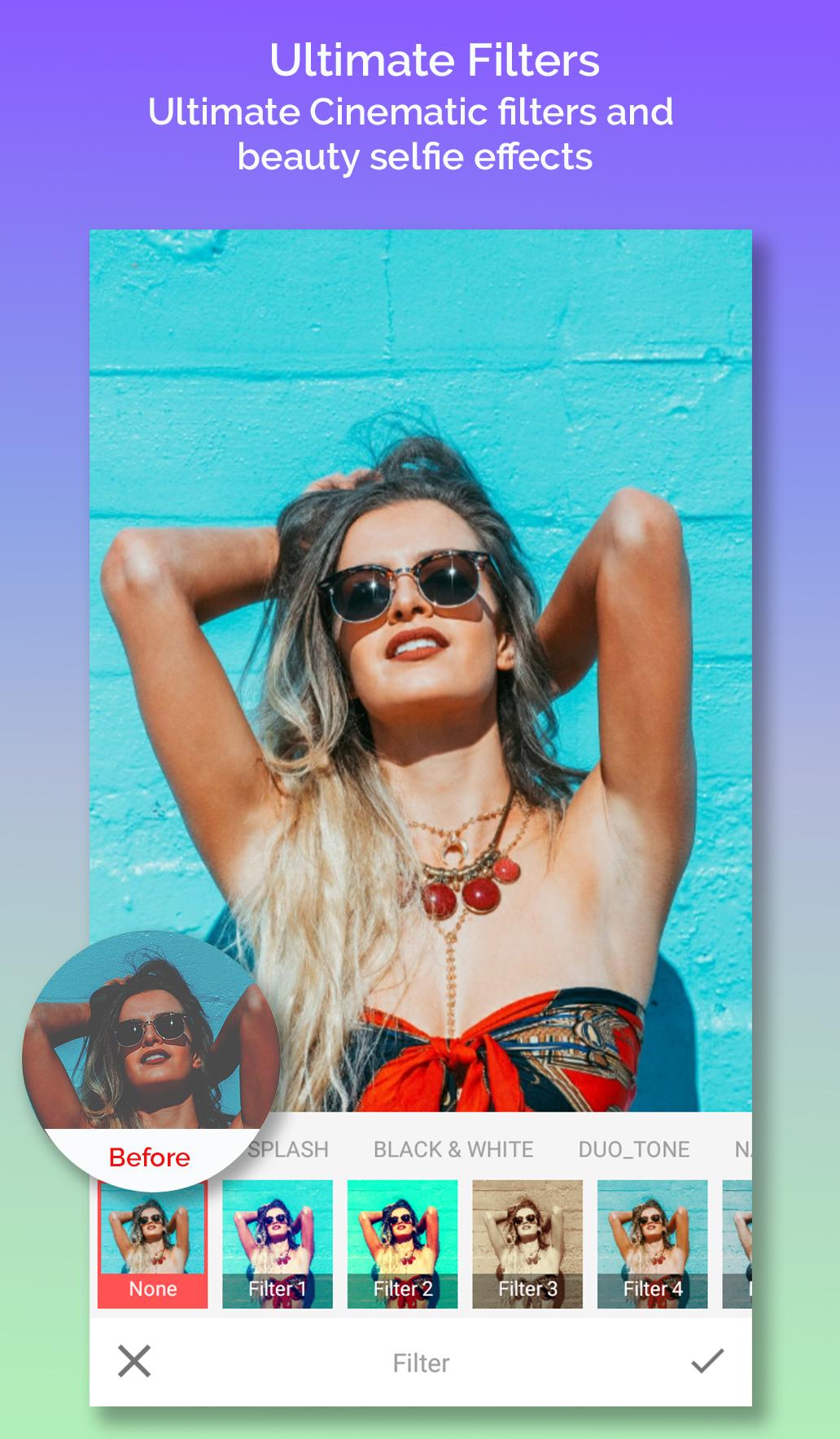Faça suas fotos memoravelmente incríveis com um poderoso aplicativo Android editor de imagens. Experimente o Editor de imagens da Lufick Ele não apenas ajuda você a tirar fotos incríveis, mas também pode editar fotos e modificá-las para ficarem mais profissionais. O Image Editor by Lufick é um aplicativo de edição de fotos que possui centenas de recursos incorporados para torná-lo um fotógrafo legal e obter looks incríveis: 💄FILTRO E FERRAMENTA DE BELEZA INTELIGENTE ☑️ Retoque o tom da sua foto usando a ferramenta de suavização. ☑️ Detectar automaticamente a área do rosto, depois suavizar e clarear apenas a área selecionada. ☑️ Desfoque o fundo ou a parte selecionada da sua foto usando desfoque gaussiano e outros efeitos de desfoque. 📸EDIÇÃO DE FILTRO DE FOTO DE CÂMERA PROFISSIONAL ☑️ Visualização instantânea da câmera com diferentes filtros. ☑️ Deslize para a esquerda e para a direita para alterar os filtros. ☑️ Várias predefinições de gradação de cores para uma selfie. 🎞️FILTROS CINEMÁTICOS ☑️ 100+ filtros cinematográficos finais e efeitos de beleza selfie. ☑️ Filtros com diferentes tipos como Splash, Black and White, Duo-Tone etc. ✂️FERRAMENTAS DE EDIÇÃO AVANÇADA E PRECISA ☑️ Melhore sua foto com correção automática, contraste, brilho, saturação, exposição, gama, vinheta, temperatura, sépia e muito mais. ☑️ Corte, gire, inverta e ajuste a imagem. ☑️ Várias opções de exportação para alta, média e baixa resolução. ✍️TEXTO EM FOTOS E EFEITO DE ESBOÇO ☑️ Adicione texto sobre a imagem com uma variedade de fontes. ☑️ Gerencie a cor do texto, textura, sombra, opacidade, alinhamento e muito mais. ✨FERRAMENTA DE EXPOSIÇÃO DUPLA DA MODA ☑️ Crie foto dupla ou multi-exposição misturando/sobrepondo várias fotos juntas. ☑️ Modos de mesclagem suportados: sobreposição, multiplicação, escurecer, tela, luz vívida e muito mais. 🖼️ CRIAR COLAGENS ☑️ Adicione várias imagens para fazer uma colagem. ☑️ Selecione, edite e escolha diferentes modelos de colagem 👆 FAÇA POSTERS LINDOS ☑️ Adicione várias imagens em belos modelos predefinidos. 📷 EDIÇÃO DE IMAGEM EXTRA PRO: ☑️ Color Splash Effect, crie uma incrível facilidade ☑️ Desfoque de fundo (efeito DSLR), não é necessário ter um telefone caro com duas câmeras - você pode criar fotos profissionais com desfoque de fundo. ☑️ ferramenta Background Eraser para apagar o fundo de uma imagem. Se você está procurando um aplicativo de edição de fotos gratuito com toneladas de filtros de fotos, ferramentas de edição profissionais e recursos versáteis - então nossa ferramenta de edição de fotos tudo-em-um é certamente sua escolha nº 1. Baixe o Editor de Imagens de Lufic de graça!