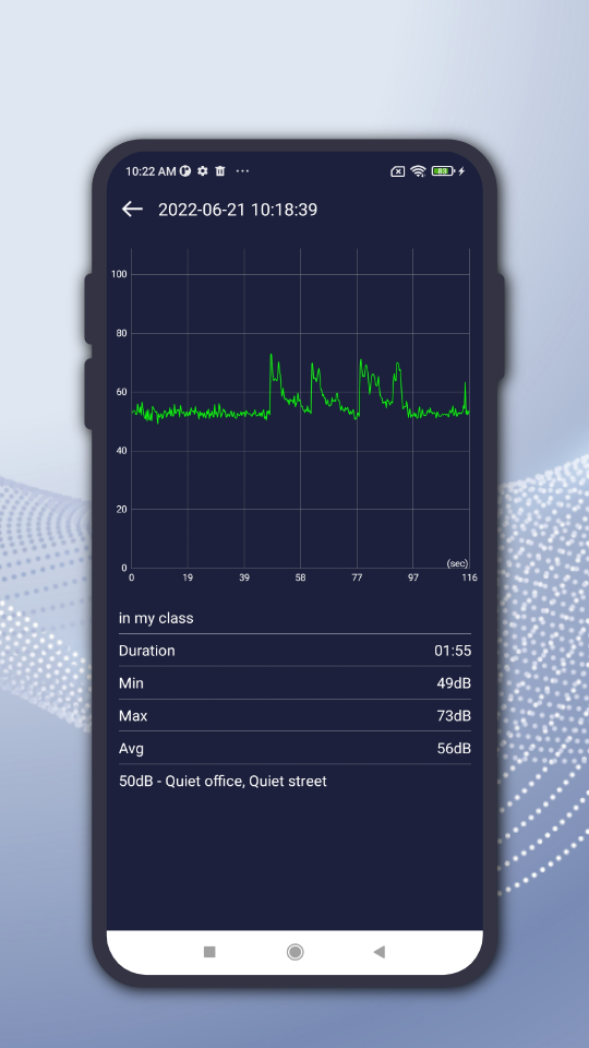 Desde que o microfone do seu dispositivo móvel esteja funcionando corretamente, você pode medir o nível de ruído onde e quando quiser.