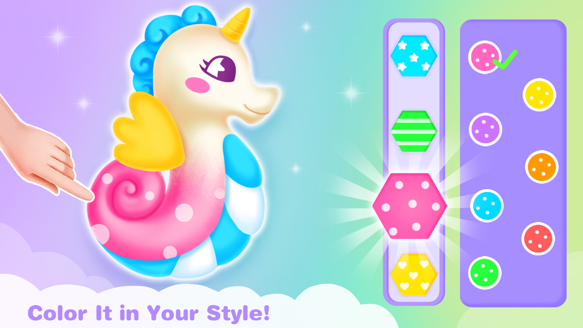 5.Sim ! É hora de espremer o lodo de unicórnio ! Não pisque ! Vou torná-lo uma cor de arco-íris no jogo de colorir para meninas ! Viu ? É tão fofo ! Vamos tentar sacudi-lo !