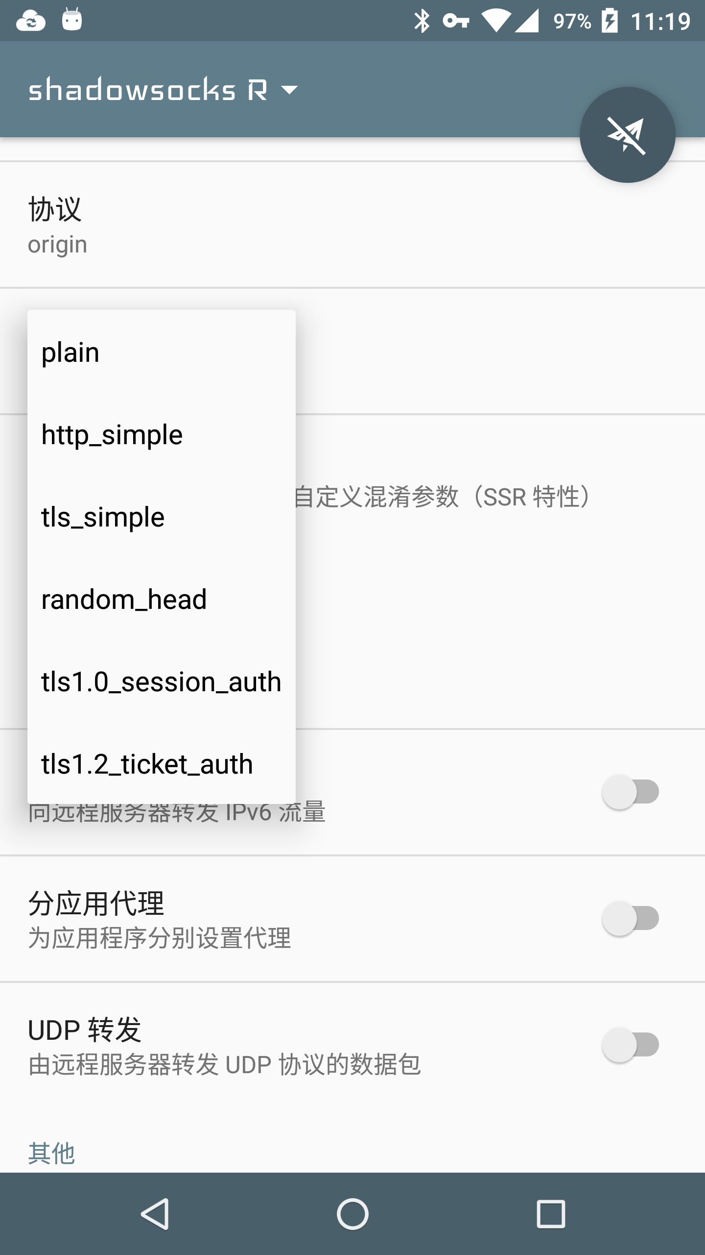 1.支持 Shadowsocks R 的混淆和协议,可以自己设置。