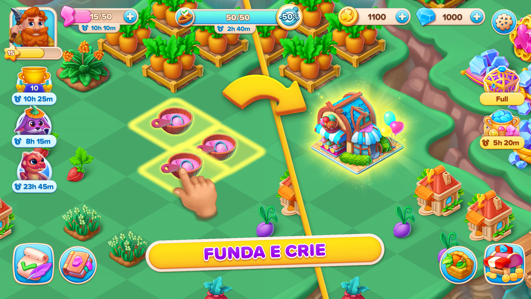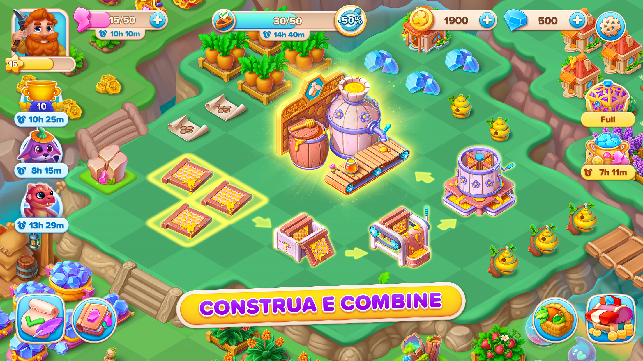 - Combine arbustos para produzir frutas e vegetais deliciosos e transformá-los em receitas deliciosas.
