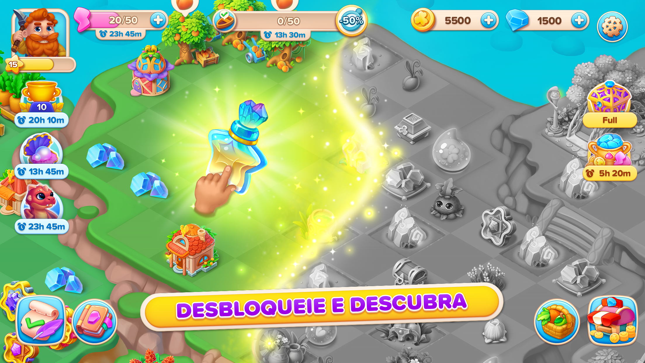 Star Merge: Merge Match Puzzle se destaca dos outros jogos de fusão por combinar gerenciamento de recursos, jardinagem e um enredo repleto de arcos de personagens intrigantes para que você se divirta muito. Ao mesmo tempo, você combina coleções cuidadosamente criadas para se fundir em peças poderosas do conto de fadas em constante evolução. Combine dragões e construa os seus jardins de fusão que fornecem os recursos para receitas complexas, porém intuitivas, para as suas lojas de artesanato. Ao trocar mercadorias e bater um papo, você receberá do mestre do porto coleções exclusivas para fundir e trocar por plantas para planejar construções que trarão uma exuberância de prosperidade ao seu assentamento inicial.