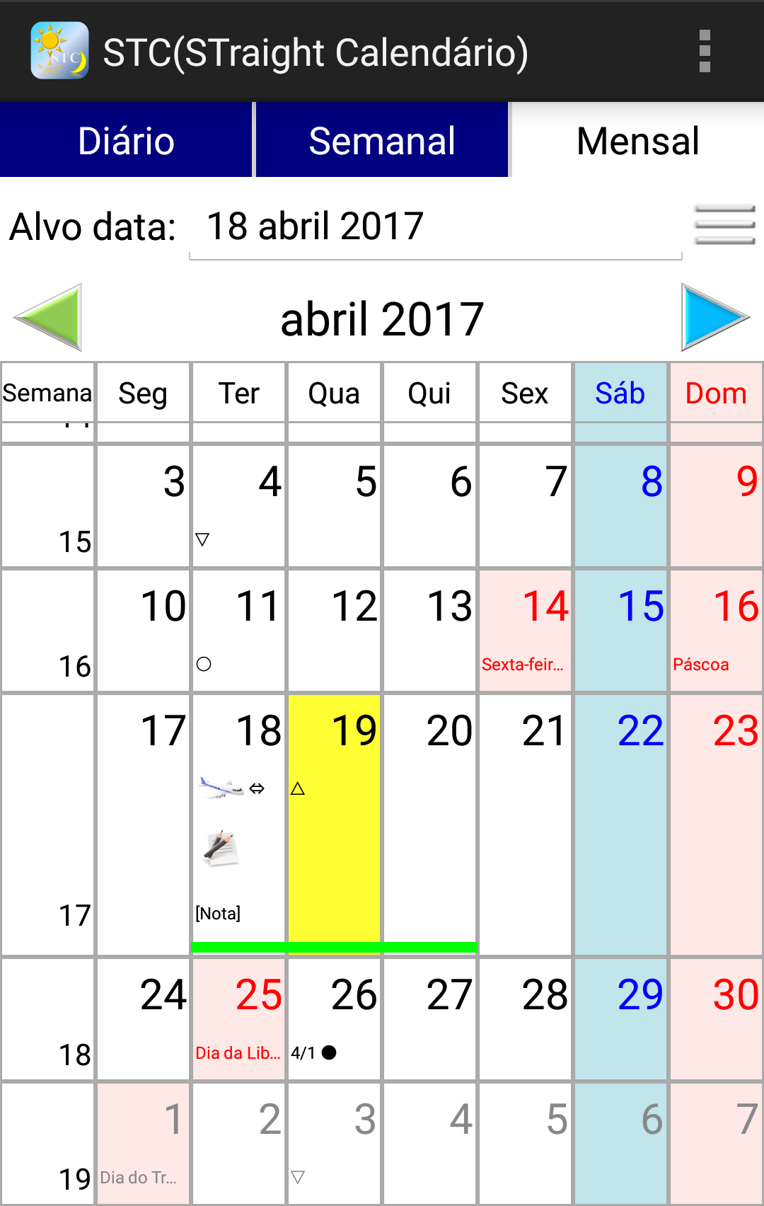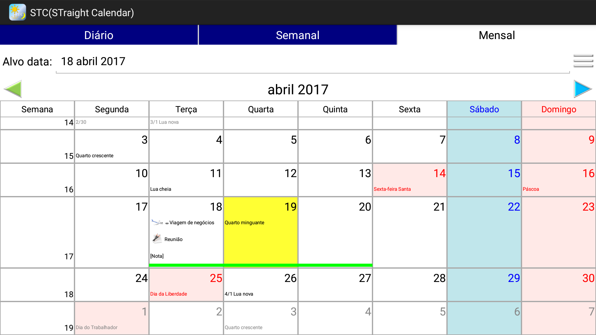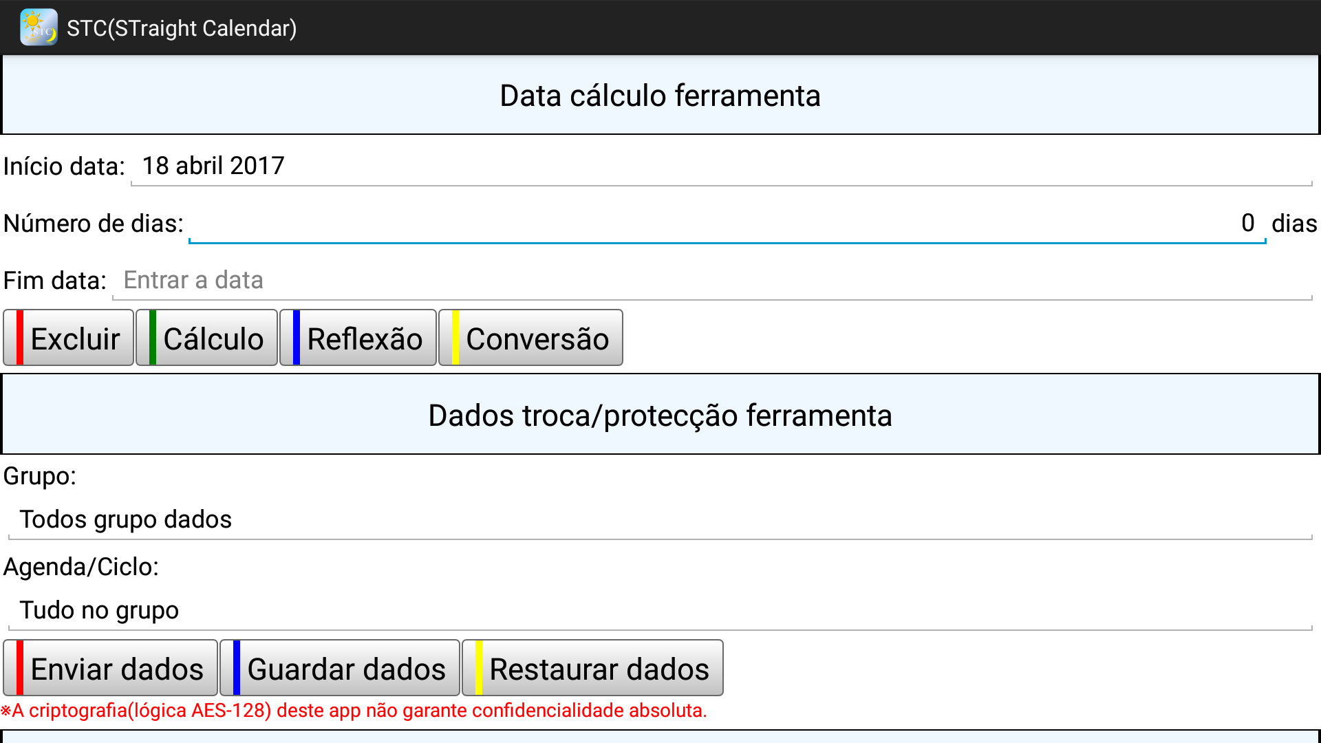 - Exibição de férias do Portugal, Estados Unidos, Canadá, Reino Unido, França, Alemanha, Itália, Japão, Espanha. ( ex) Em Portugal : Ano Novo, Entrudo, Sexta-feira Santa ... etc. Ele suporta o feriado de todos os distritos do país correspondente. E sequencialmente, continuar a adicionar o país / região correspondente.) - Exibição do calendário lunisolar e Lunação. - Também pode exibir vários eventos. (Feriados Cristãos(Páscoa, Pentecostes, Assunção de Maria ... etc.), Feriados Judaicos(Páscoa Judaica, Chanucá, Purim ... etc.), Feriados islâmicos(Muharram, Ramadão, Eid al-Adha ... etc.), Horãrio de Verão data de início/término ... etc.) - Pode converter-se ao calendário Judaico/Hijri.(calendário hebraico e islâmico.) - Corresponde ao widget. (Exibe o calendário diário.) - No calendário semanal, mensal, pode especificar topo com o qualquer dia da semana. (Segunda-feira, é claro, também é possível terças e sábados começo.) - Ele pode gerenciar agenda apenas com um smartphone, e pode ser usado off-line. - Ele pode trocar agendas em um grupo usando a nuvem e o e-mail. (Só é compatível com o Android atualmente.) - No caso de guardar e trocar o agendas, ele pode trancar com uma senha(AES 128 bit). - Ele pode utilizar a agenda do Calendário Google.(No entanto, Over ver4.0) - Ele pode registrar o agendas em vários métodos de especificação. ("Todas as terças-feiras, exceto feriados", "Segunda terça-feira".) - Ele pode facilmente registrar uma agendas. (1.Toque no destino data/hora. 2.Introduza uma agenda. 3.Toque no "Adição". Complete!) - Ele pode prever o ciclo e gerenciar o desempenho. (Por exemplo, a previsão de 29 dias ciclo e registro de desempenho. Também, ele pode ser usado na gestão da saúde das mulheres.) - Agendas pode ser exibida a imagem de um favorito como um ícone. - No caso de agendas consecutivos, não é exibido um por um, Ele pode exibir com uma banda em um caroço. - A cor da banda pode ser selecionada entre 12 cores e a classificação de cores é possível para cada tipo, como família. - No caso do agendas dos dias consecutivos (como 21:00 - 6:00 na manhã seguinte), Ele pode facilmente configurar. - Ele pode ajustar a diferença de tempo da agenda de acordo com a data e hora especificadas. (Cálculo automático pela mudança de fuso horário ex) Tóquio 10:00 ⇒ Nova Iorque 20:00 (O dia anterior)) - Diário e Nota(pode ser usado como um ToDo) inclui. - Função de alarme e snooze inclui. (Ele pode definir o tempo de despertar em consideração do dia da semana e feriados.) - Ele exibe como usar na \"Guia\". (Para exibir os religiosos feriados, como Cristãos feriados?, Para exibir o oculto calendário?, Para adicionar um aniversário?, Para alterar os países/regiões do alvo de exibição?, Para adicionar um snooze alarme?, Para especificar um ícone na agenda/ciclo?, Para ocultar a agenda/ciclo de usuários? etc.) [Disclaimer] - O Desenvolvedor não é responsável por quaisquer danos ou perdas de qualquer tipo causados pela instalação, uso ou uso indevido deste aplicativo. - A criptografia(lógica AES-128) deste app não garante confidencialidade absoluta. - Ao usar a imagem, observe a lei de direitos autorais. - Por favor, Use este calendário como referência. - Por favor, confirme o calendário oficial ao seu governo, conforme necessário. [Marcas registradas] - "Calendário Google" é uma marca comercial ou marca comercial registrada da Google Inc.