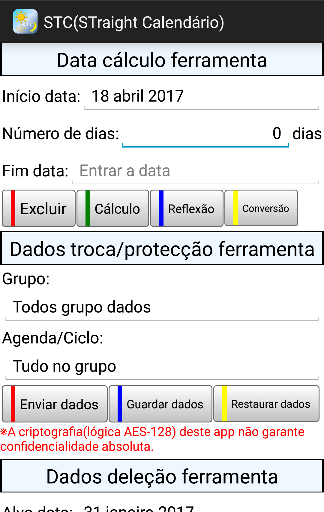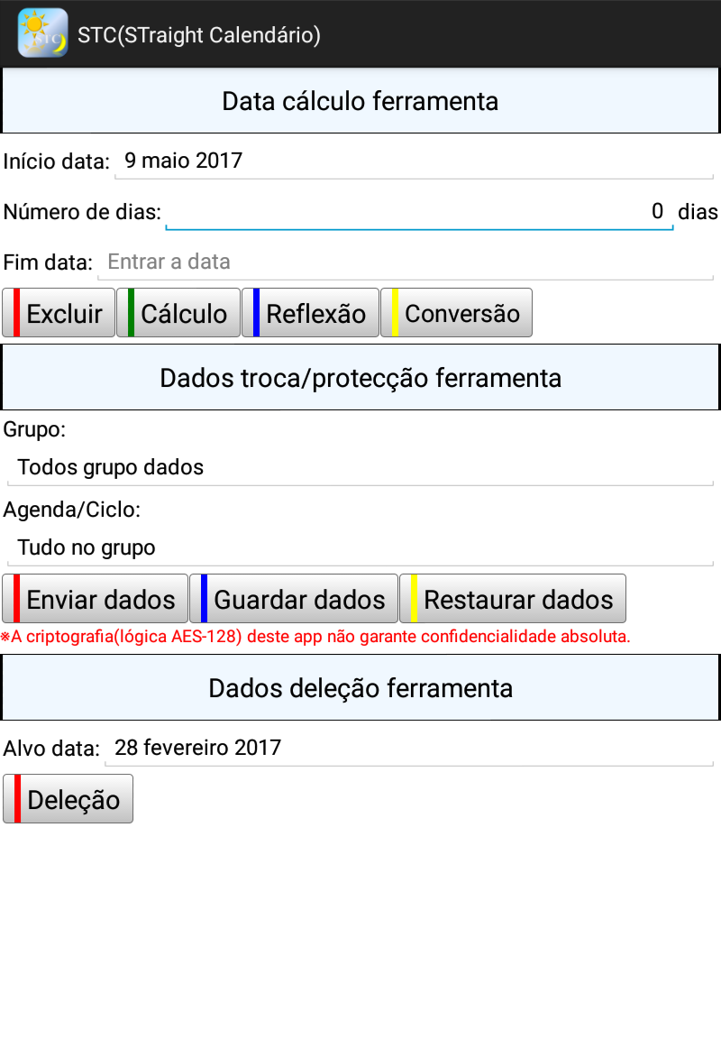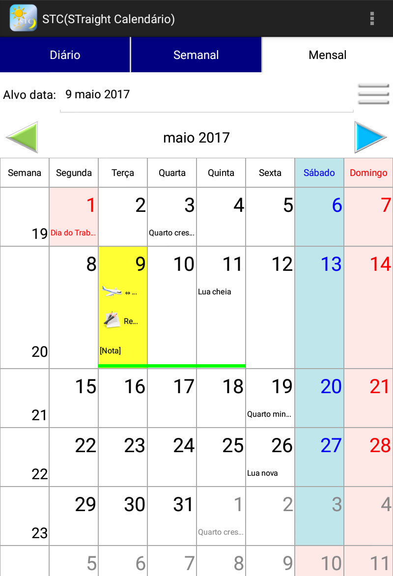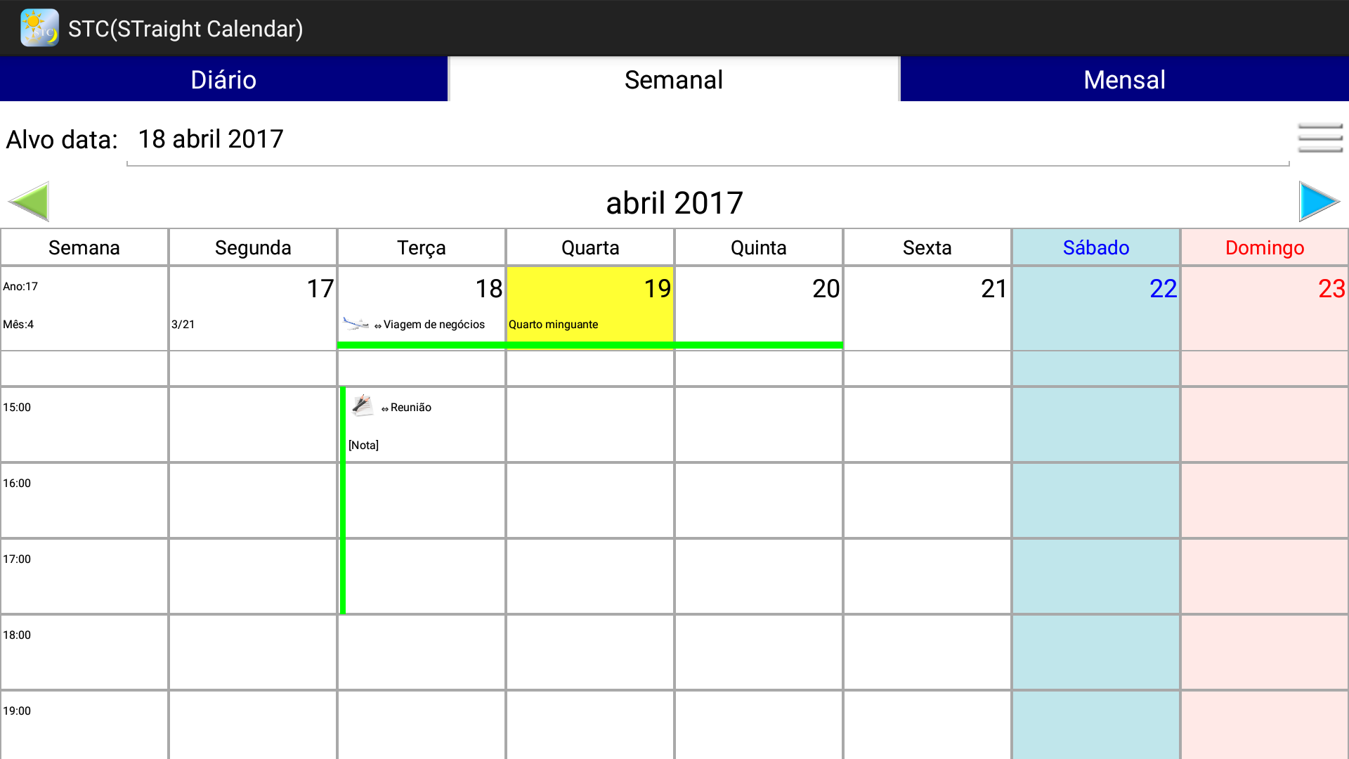 - Exibição de férias do Portugal, Estados Unidos, Canadá, Reino Unido, França, Alemanha, Itália, Japão, Espanha. ( ex) Em Portugal : Ano Novo, Entrudo, Sexta-feira Santa ... etc. Ele suporta o feriado de todos os distritos do país correspondente. E sequencialmente, continuar a adicionar o país / região correspondente.) - Exibição do calendário lunisolar e Lunação. - Também pode exibir vários eventos. (Feriados Cristãos(Páscoa, Pentecostes, Assunção de Maria ... etc.), Feriados Judaicos(Páscoa Judaica, Chanucá, Purim ... etc.), Feriados islâmicos(Muharram, Ramadão, Eid al-Adha ... etc.), Horãrio de Verão data de início/término ... etc.) - Pode converter-se ao calendário Judaico/Hijri.(calendário hebraico e islâmico.) - Corresponde ao widget. (Exibe o calendário diário.) - No calendário semanal, mensal, pode especificar topo com o qualquer dia da semana. (Segunda-feira, é claro, também é possível terças e sábados começo.) - Ele pode gerenciar agenda apenas com um smartphone, e pode ser usado off-line. - Ele pode trocar agendas em um grupo usando a nuvem e o e-mail. (Só é compatível com o Android atualmente.) - No caso de guardar e trocar o agendas, ele pode trancar com uma senha(AES 128 bit). - Ele pode utilizar a agenda do Calendário Google.(No entanto, Over ver4.0) - Ele pode registrar o agendas em vários métodos de especificação. ("Todas as terças-feiras, exceto feriados", "Segunda terça-feira".) - Ele pode facilmente registrar uma agendas. (1.Toque no destino data/hora. 2.Introduza uma agenda. 3.Toque no "Adição". Complete!) - Ele pode prever o ciclo e gerenciar o desempenho. (Por exemplo, a previsão de 29 dias ciclo e registro de desempenho. Também, ele pode ser usado na gestão da saúde das mulheres.) - Agendas pode ser exibida a imagem de um favorito como um ícone. - No caso de agendas consecutivos, não é exibido um por um, Ele pode exibir com uma banda em um caroço. - A cor da banda pode ser selecionada entre 12 cores e a classificação de cores é possível para cada tipo, como família. - No caso do agendas dos dias consecutivos (como 21:00 - 6:00 na manhã seguinte), Ele pode facilmente configurar. - Ele pode ajustar a diferença de tempo da agenda de acordo com a data e hora especificadas. (Cálculo automático pela mudança de fuso horário ex) Tóquio 10:00 ⇒ Nova Iorque 20:00 (O dia anterior)) - Diário e Nota(pode ser usado como um ToDo) inclui. - Função de alarme e snooze inclui. (Ele pode definir o tempo de despertar em consideração do dia da semana e feriados.) - Ele exibe como usar na \"Guia\". (Para exibir os religiosos feriados, como Cristãos feriados?, Para exibir o oculto calendário?, Para adicionar um aniversário?, Para alterar os países/regiões do alvo de exibição?, Para adicionar um snooze alarme?, Para especificar um ícone na agenda/ciclo?, Para ocultar a agenda/ciclo de usuários? etc.) [Disclaimer] - O Desenvolvedor não é responsável por quaisquer danos ou perdas de qualquer tipo causados pela instalação, uso ou uso indevido deste aplicativo. - A criptografia(lógica AES-128) deste app não garante confidencialidade absoluta. - Ao usar a imagem, observe a lei de direitos autorais. - Por favor, Use este calendário como referência. - Por favor, confirme o calendário oficial ao seu governo, conforme necessário. [Marcas registradas] - "Calendário Google" é uma marca comercial ou marca comercial registrada da Google Inc.