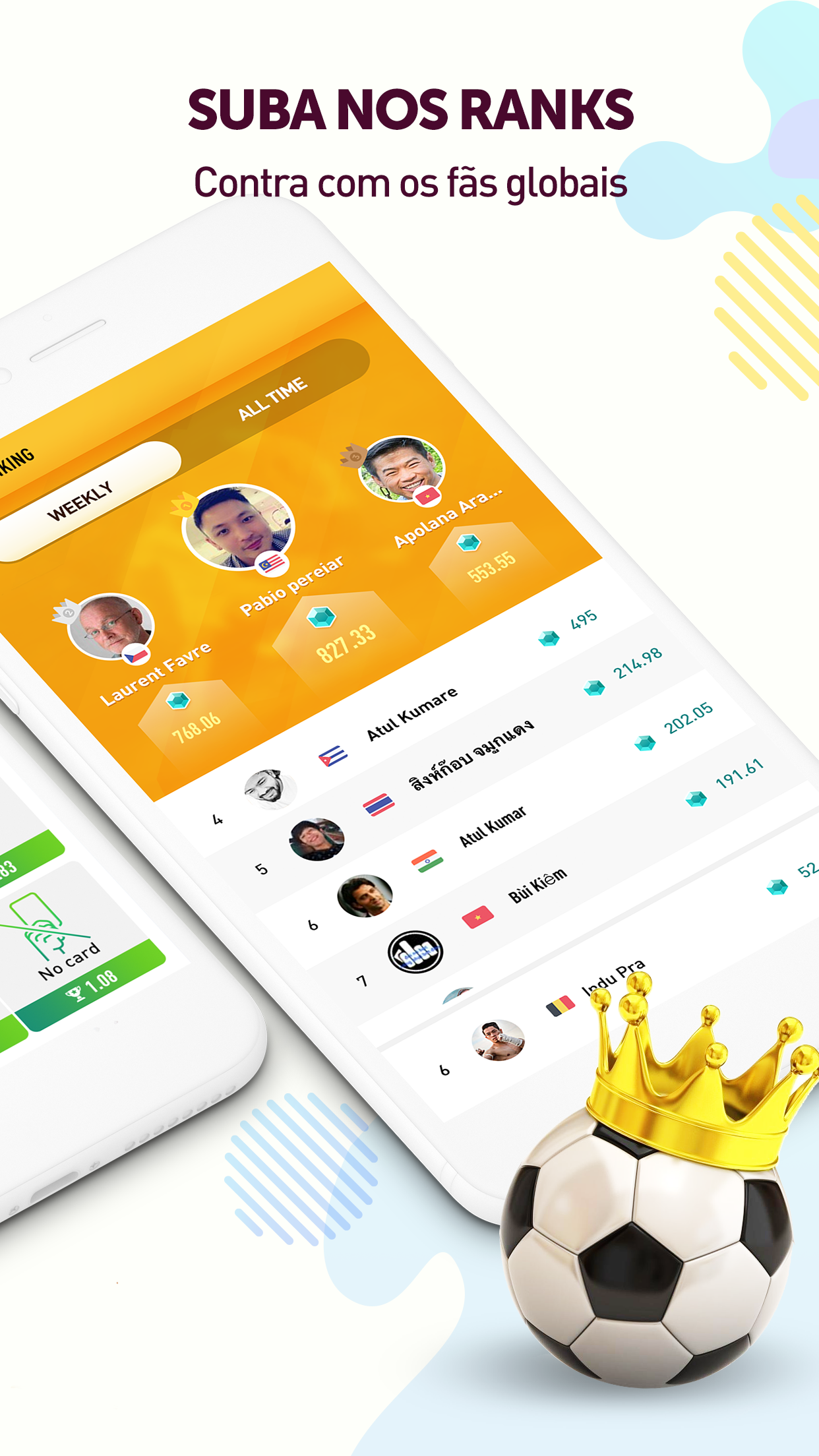 Independentemente da equipe que você está apoiando, você sempre verá tabelas atualizadas ao vivo com sua classificação e verá sua posição de mudança como uma lista global. Desafie os jogadores na França, Inglaterra, Coréia, Itália, Egito, México, Colômbia ou China e sinta a verdadeira experiência GLOBAL de jogos de futebol com jogadores internacionais.