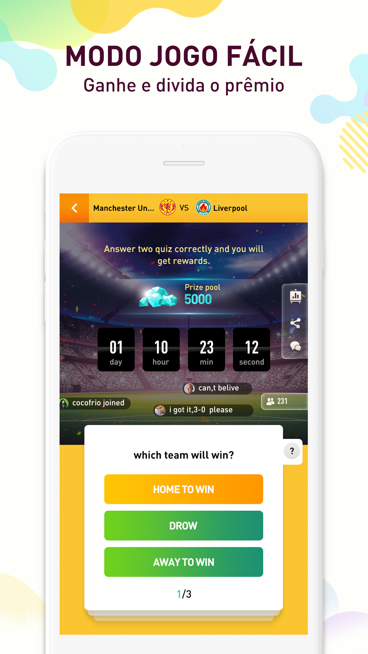 • Ganhe troféus, se a previsão selecionada estiver correta;