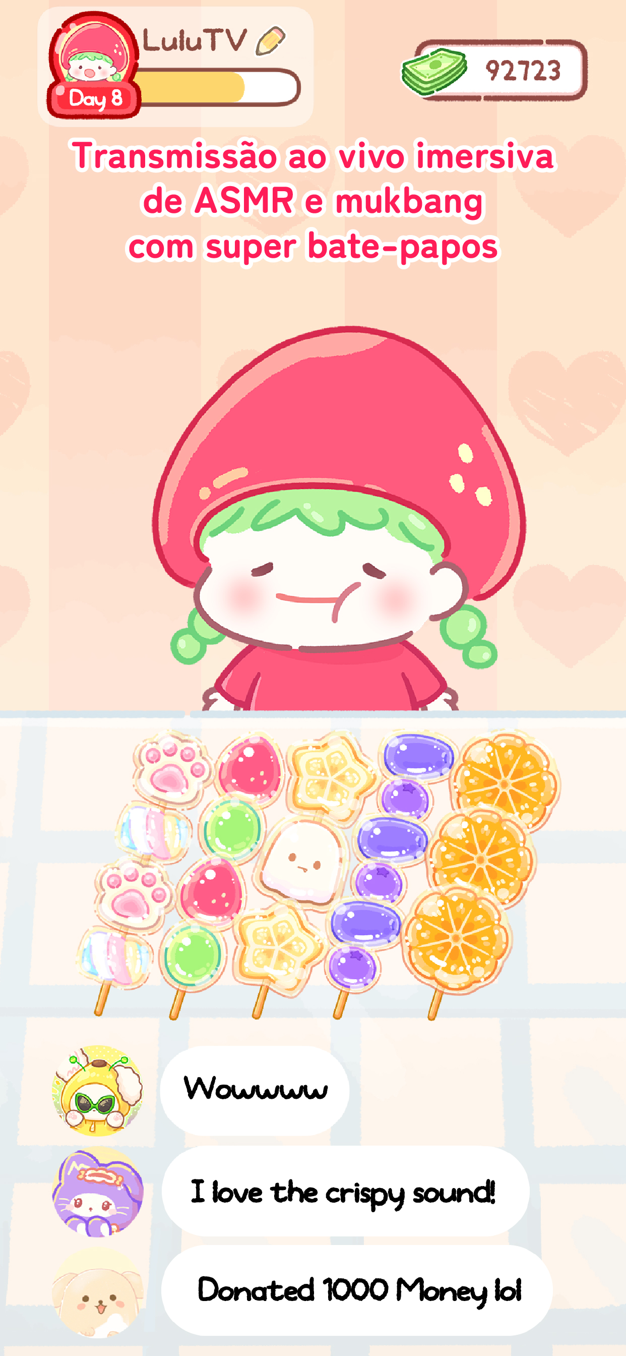 A família de Lulu, que já foi a mestra em fazer tanghulu, enfrenta um desafio crescente à medida que mais lojas de tanghulu surgem e roubam seus clientes. Embarque na jornada com Lulu em seu objetivo de restaurar a loja de sua família no mundo do mukbang ASMR e torne-se um verdadeiro mestre do tanghulu!