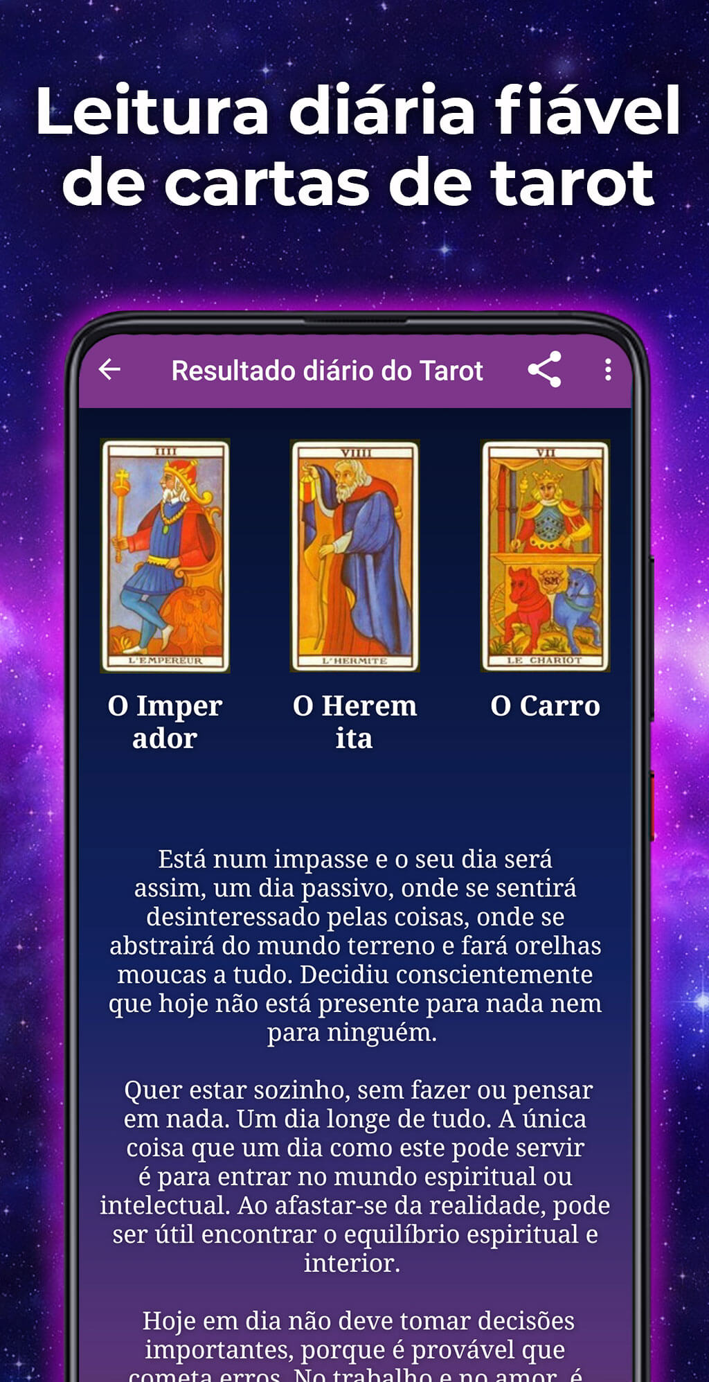 Leitura gratuita de tarot é uma aplicação portuguesa que contém 7 tipos de leitura e dá acesso a mais de 30 aplicações de tarot e clarividência!