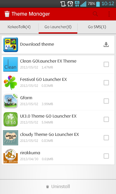 dodol Launcher, Kakao Talk, go Launcher, go SMS, Q2 Keyboard, Super note, System font and so on