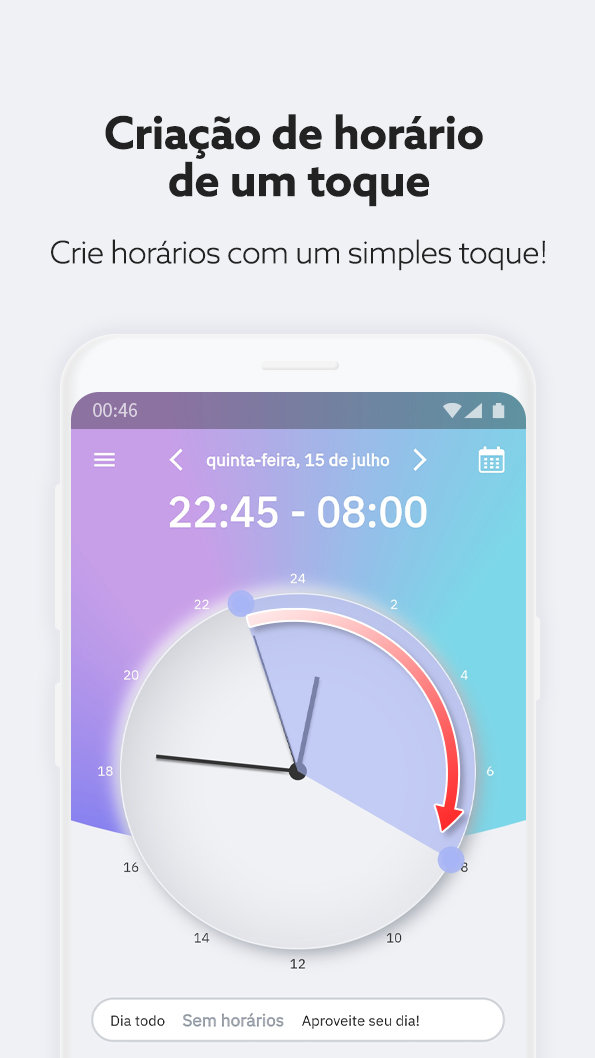- Criação de horários com um simples arrasto no relógio principal