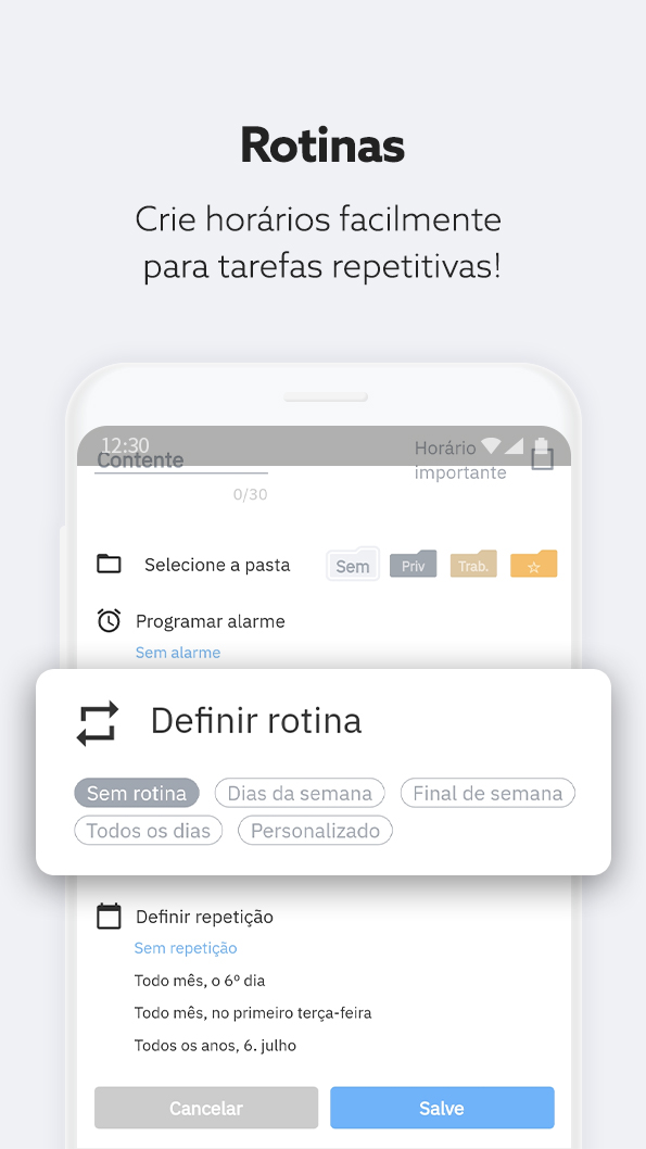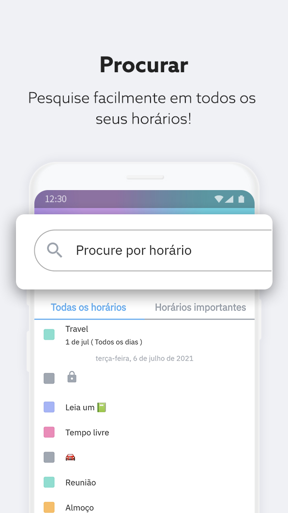 - Crie horários facilmente para tarefas repetitivas, como esportes, trabalho, escola, etc.