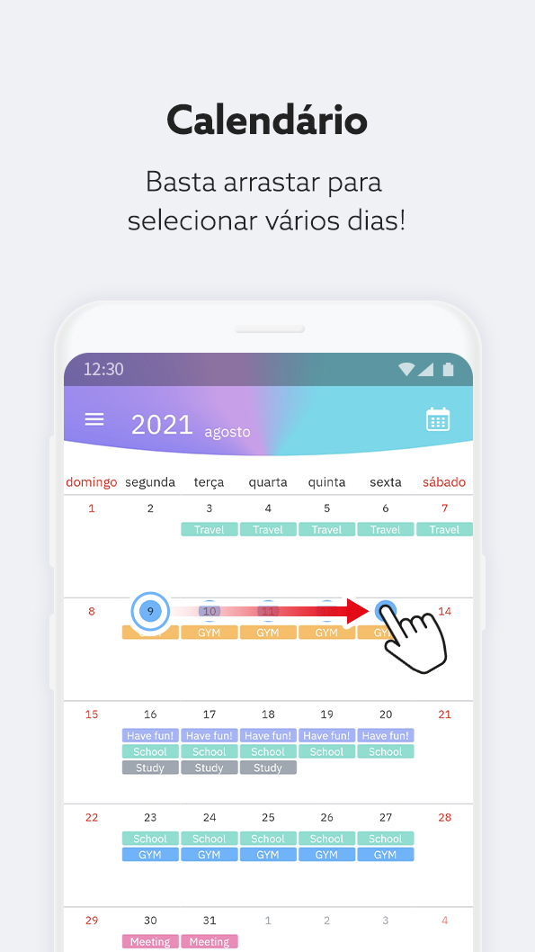 - Pressione e arraste para selecionar vários dias.