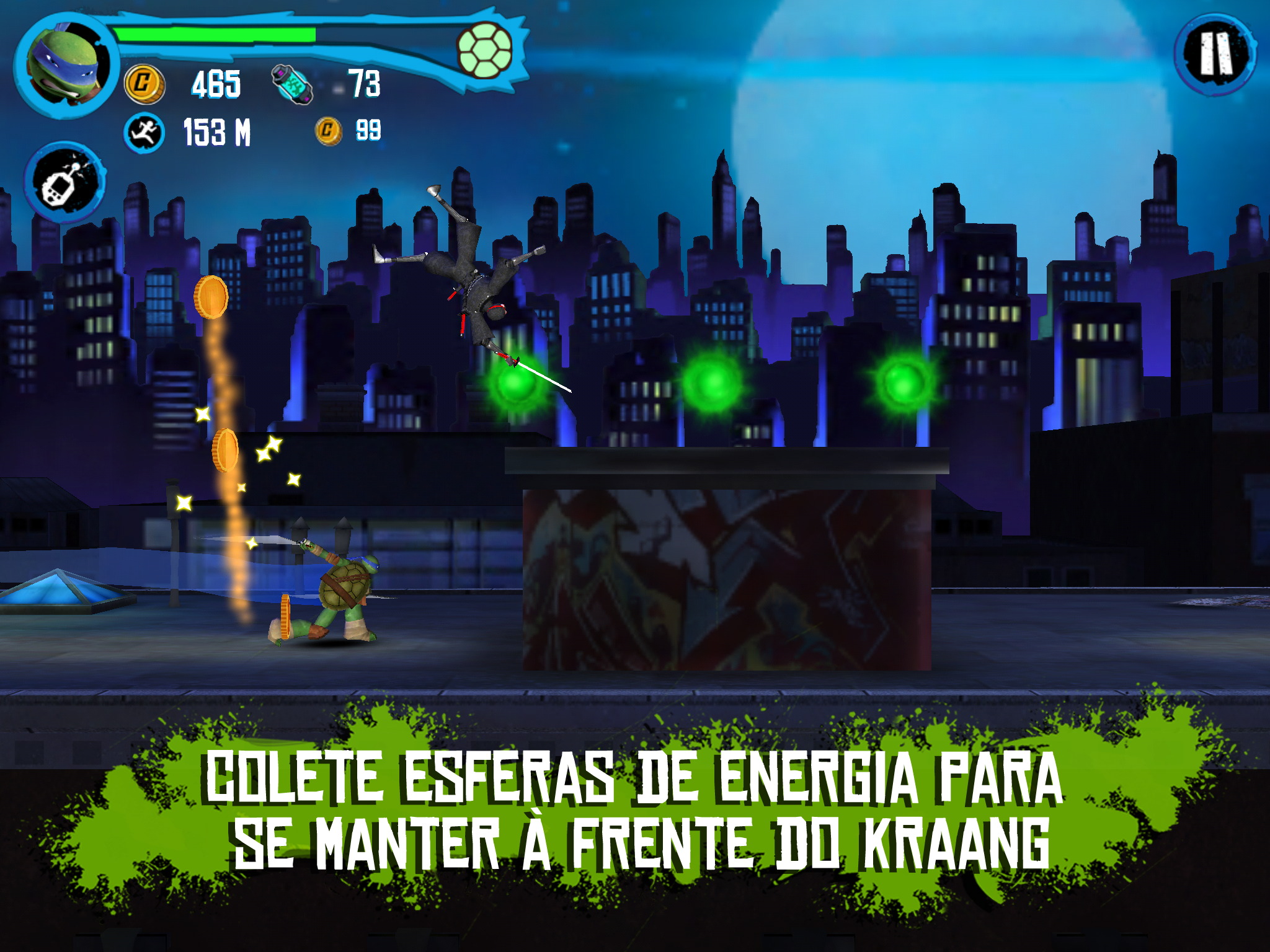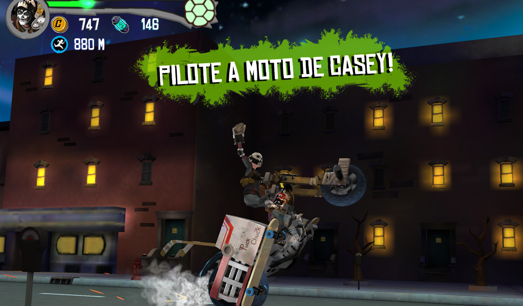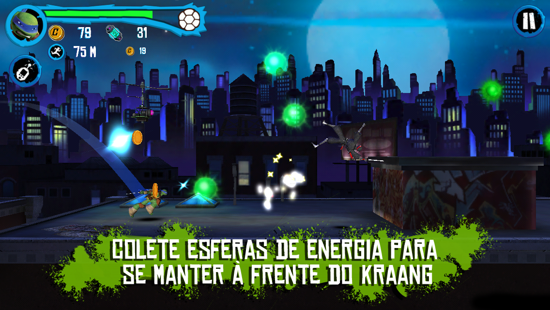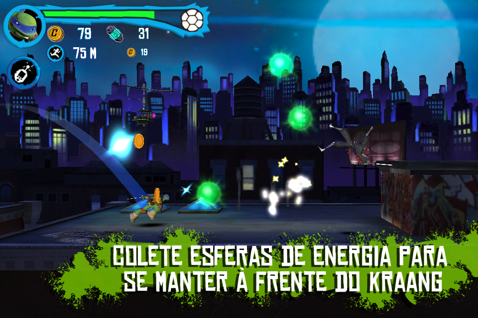 App #1 em 80 países! Você pode jogar como Leo, Donnie, Raph, Mikey ou com personagens desbloqueáveis como April e Casey Jones neste jogo de combate cheio de ação com modo de veículos! Corra, pule, lute e dirija pelas ruas de Nova Iorque enquanto você livra a cidade do Clã do Pé, Kraang, Dimensão X e Baxter Stockman. Recolha orbes de energia para destravar amras exclusivas, equipamentos e impulsos que vão te manter sempre à frente da nave Kraang. Controles de toque único combinados com movimentos ninja e batalhas incríveis criam uma experiência de jogo épica! BOOYAKASHA! RECURSOS *NOVO! Livre-se dos inimigos diriginto a motocicleta de Casey Jonez, a Chopper. *Dirija o Furgão das Tartarugas pelas ruas de Nova York no novo modo de veículo! *Pule por rampas, destrua obstáculos e toque para atirar o canhão de lixo nos inimigos que encontrar pelo caminho. *Lute contra hordas de inimgos, como o Clã do Pé, Kraang, Dimensão X e Baxter Stockman. *Ative o Tempo da Tartaruga para lutar em câmera lenta em uma eletrizante sequência de combate. *Equipe as tartaguras com as exclusivos dispositivos Ciber e Sigilo. *Aprimore suas armas, dispositivos e potenciadores como o Robô Laser e o Salvador de Tartarugas. *Desbloqueie e jogue com o amigo canino das Tartarugas, Dogpound *Ganhe recompensas com mini-jogo da hora da pizza! *Teste suas habilidades com os novos desafios do jogo. EM BREVE Fique de olhos abertos para algumas atualizações chocantes. Tartarugas Ninja: Corrida no Telhado usa dinheiro de verdade para comprar conteúdo adicional dentro do aplicativo. Voc~e pode bloquear a opção de compras dentro do aplicativo ajustando as configurações do seu aparelho. Tartarugas Ninja - Corrida no Telhado coleta dados pessoais do usuário, assim como dados não pessoais do usuário (incluindo dados agregados) e oferece compras dentro do app. A aquisição de dados do usuário está em acordo com leis aplicáveis, como a COPPA. Dados do usuário podem ser usados, por exemplo, para responder a pedidos do usuários; possibilitar que os usuários façam uso de certos recursos e serviços; personalizar conteúdo e publicidade; e administrar e melhorar os serviços da Nickelodeon. Para mais informações sobre o uso de dados pessoais do usuário pela Nickelodeon, por favor visite o Grupo de Política de Privacidade da Nickelodeon. Nossa Política de Privacidade é em adicional a quaisquer termos, condições ou políticas concordadas entre você e a Google.com, e a Nickelodeon e suas entidades afiliadas não são responsáveis pela aquisição ou uso de seus dados e informações pessoais de usuário pela Google.com. O uso deste app está sujeito ao Contrato de Licença de Usuário da Nickelodeon.