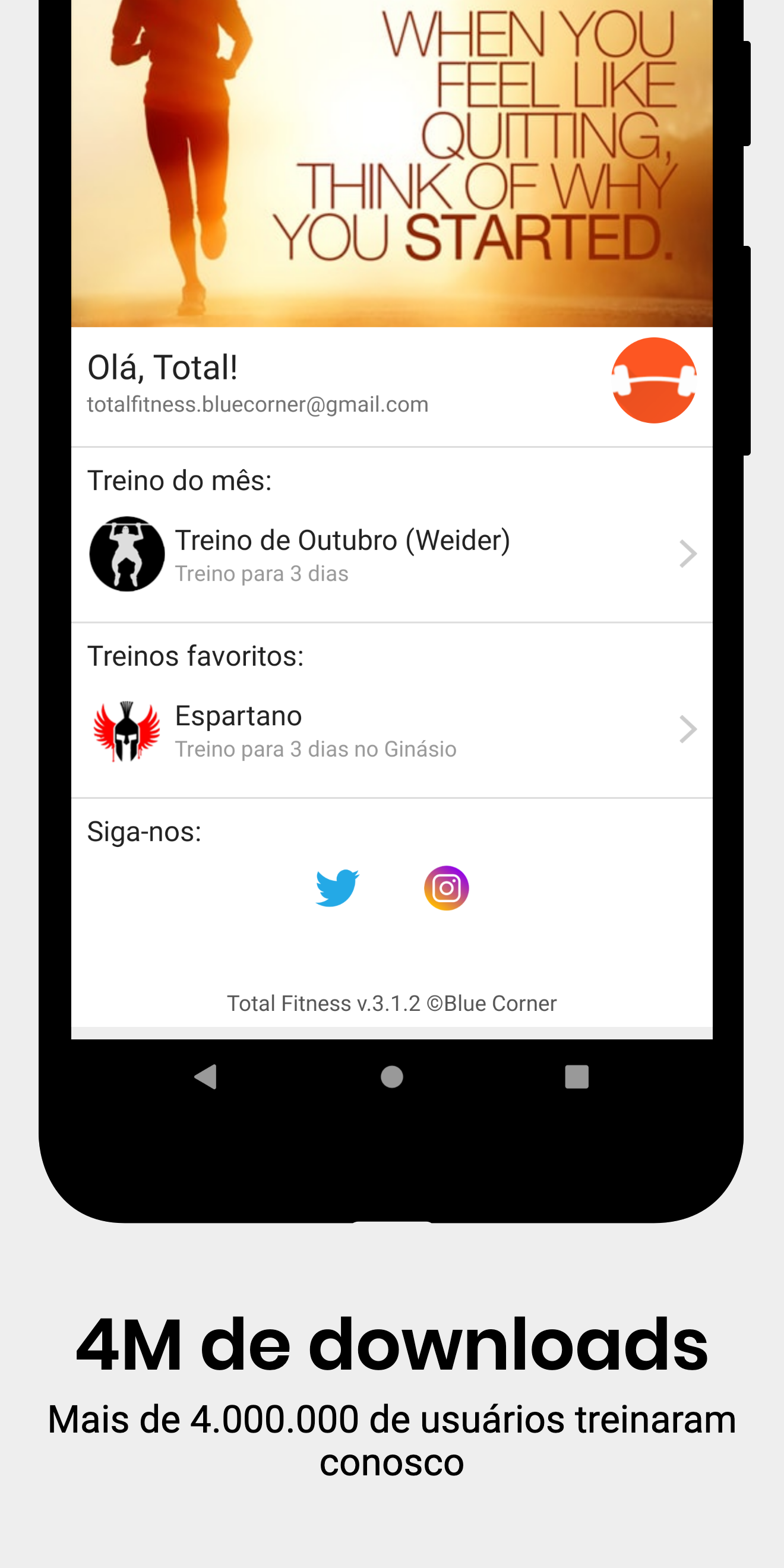Total Fitness é um guia de fitness para os fãs deste desporto. O Total Fitness oferece-lhe uma grande quantidade de informação que vai ajudá-lo a alcançar os seus objetivos. O Total Fitness tem muitos exercícios e treinos para treinar no seu ginásio ou em casa O Total Fitness tem as seguintes secções: Guia de Exercícios de Ginásio Mais de 100 exercícios diferentes para fazer no ginásio com a explicação do exercício, informações sobre músculos envolvidos, imagens e um vídeo de explicação Ginásio e exercícios de casa Diferentes exercícios que vão ajudá-lo a programar o seu trabalho semanal, tão duro como quiser ou puder. Pode treinar no ginásio ou em casa Exercícios guiados Diferentes exercícios guiados que permitirão a prática de fitness em casa com a ajuda desta aplicação Desafios Para tentar superar-se e atingir alguns dos objetivos que se propõe no Total Fitness tenta alcançar o seu melhor treino com estes exercícios. Meu Progresso O Total Fitness ajuda a controlar as suas melhorias com esta secção. Aqui, vai ser capaz de controlar o seu IMC (índice de massa corporal), %, a de gordura e sua força. Meus treinos Crie seus próprios treinos! Nutrição Aptidão total irá ajudá-lo apoiar o seu trabalho no ginásio com aconselhamento nutricional para que você saiba o que, quando e como comer para atingir seus objetivos. Utilitários Total Fitness oferece-lhe a maneira de calcular o seu IMC, gordura %, e sua força. Esta aplicação é gratuita, só pedimos a sua avaliação positiva para que mais pessoas conheçam a app e para podermos continuar a melhorá-la Esperamos que goste!