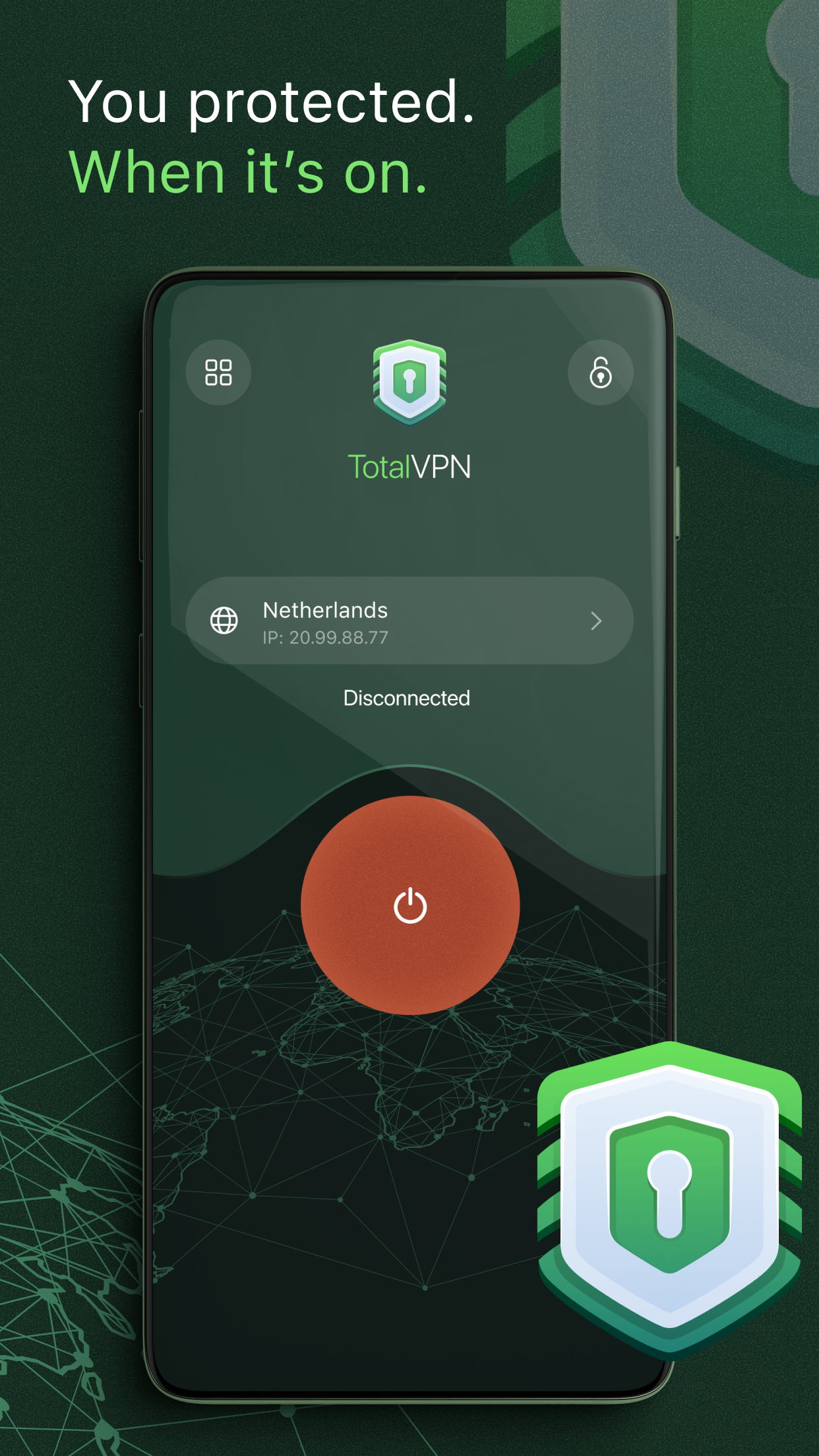 O VPN total nunca registrará ou monitorará o tráfego da rede VPN. Você pode manter o que faz online com você e ficar tranquilo enquanto usa o Total VPN