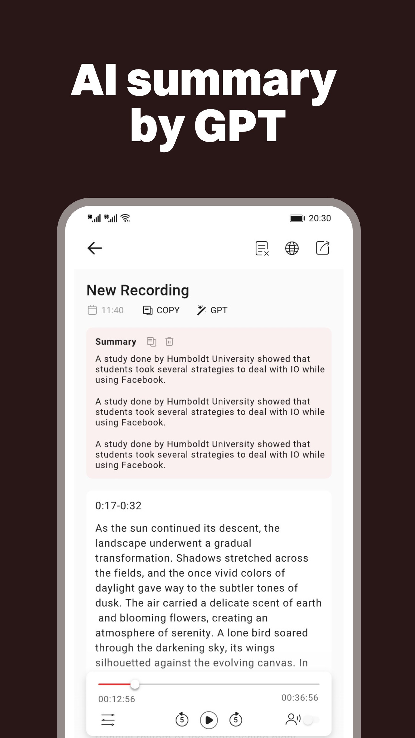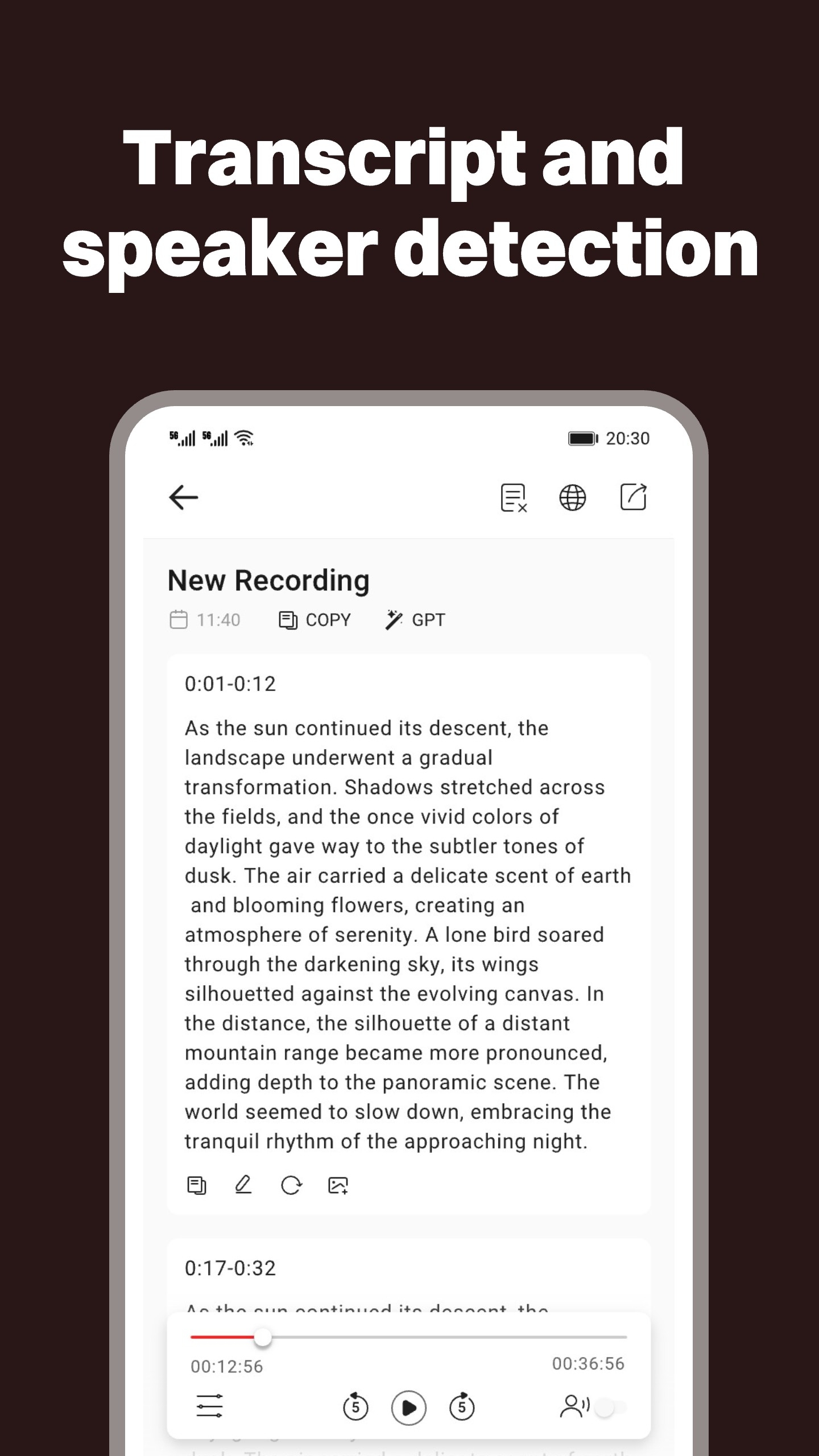 ✓ Text to speech and voice changer ✓ Speech to text,speaker detection and AI summary by GPT ✓ Extracting audio from video ✓ Vocal separation ✓ Audio compression ✓ Audio import ✓ Deleted file recovery ✓ Echo cancellation and noise reduction