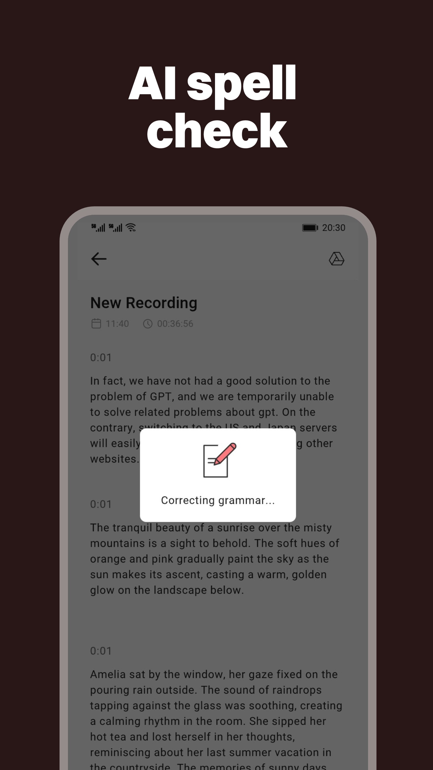 Seja você um estudante, funcionário, músico ou qualquer pessoa que queira capturar momentos importantes, o Voice Recorder é a ferramenta perfeita para você. Este aplicativo fácil de usar permite gravar áudio para reuniões, entrevistas, apresentações e aulas, e até mesmo usá-lo para gravar narrações, músicas e fazer anotações pessoais. O Voicee Recorder utiliza tecnologia de reconhecimento de fala para converter gravações em texto e pode até distinguir entre diferentes falantes. Ao integrar a API do ChatGPT, uma tecnologia AI, o Voicee Recorder pode resumir e refinar rapidamente os principais pontos do conteúdo do texto, fornecendo uma maneira mais eficiente de revisar e analisar as gravações. Esse recurso pode ser especialmente útil para empresas, pesquisadores ou qualquer pessoa que precise transcrever e analisar conteúdo de áudio com rapidez e precisão. Mas isso não é tudo! Com o recurso de edição de áudio simples e rápido do Gravador de Voz, você pode cortar facilmente quaisquer partes desnecessárias da sua gravação, tornando-a mais simplificada e eficiente. Para estudantes: Com o Gravador de Voz, você nunca perderá uma palavra que seu professor disser. Independentemente de onde você se senta na sala de aula, você pode gravar claramente a voz do professor e reproduzi-la em um ritmo confortável para melhor compreensão. Você pode ouvir essas gravações várias vezes, acelerar ou diminuir a velocidade de reprodução e até mesmo marcar conteúdo importante com tags para uma melhor anotação. Para funcionários: O Voice Recorder é uma ferramenta indispensável para gravar teleconferências, reuniões e entrevistas, para evitar a perda de informações importantes. Você pode gerenciar facilmente suas gravações com o Voice Recorder e adicionar tags para marcar conteúdo importante para melhor organização e documentar seu trabalho. Para Músicos: Esteja você ensaiando ou capturando melodias repentinas, os recursos de gravação de alta qualidade do Voice Recorder são perfeitos para gravar vocais e uma variedade de instrumentos. Você pode experimentar novas ideias rapidamente, ouvir os resultados e fazer ajustes com base na nova inspiração. Para todos: Com o Gravador de Voz, você pode capturar inspiração e gravar os sons maravilhosos da sua vida a qualquer momento. Você pode facilmente marcar gravações para localizá-las e editá-las rapidamente durante o processo de revisão. Com o Gravador de Voz, você nunca mais perderá um momento importante! Recurso: - Fala para texto, detecção de alto-falante e resumo de IA por GPT - Suporte a separação vocal - Texto para fala e vários tipos de voz - Cancelamento de eco, redução de ruído, loop de áudio - Use o modo de edição para cortar gravações e excluir partes indesejadas - Carregar gravações para o seu Google Drive - Importar áudio local, biblioteca de vídeos ou Google Drive - Calibração de ganho do microfone para gravação de áudio de alta qualidade - As gravações não têm limite de tempo, apenas limitadas pelo espaço de armazenamento disponível - Gravação em segundo plano, gravação com tela desligada - Suporta vários formatos de gravação - Salvar/Pausar/Retomar/Cancelar controle do processo de gravação - Lista simples de gravações e muitas opções de compartilhamento - Iniciar gravação com um clique, use widgets e atalhos para iniciar rapidamente uma nova gravação - Definir gravação como toque - Logotipo de gravação personalizado - A gravação pode ser continuada - Comprimir o tamanho da gravação - Reprodução em várias velocidades Devido à limitação da área de suporte GPT, até agora, os seguintes países e regiões oferecem suporte ao uso do resumo AI pela função GPT: https://voicerecorder.microsingle.com/countries-and-regions.html Permissões do aplicativo: • Fotos/Mídia/Arquivos - salve a gravação em seu armazenamento. • Microfone - Grave áudio de seu microfone.