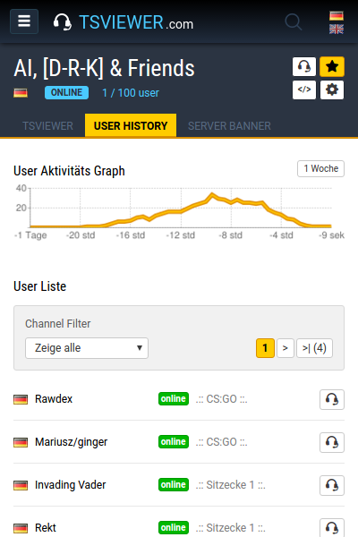 O TSViewer.com é um visualizador do TeamSpeak 3 Viewer e um banco de dados do TS3 Server com recursos adicionais, como por exemplo o gerenciamento de Amigos, favoritos do Servidor, Banners do Usuário e o widget do site TSViewer.