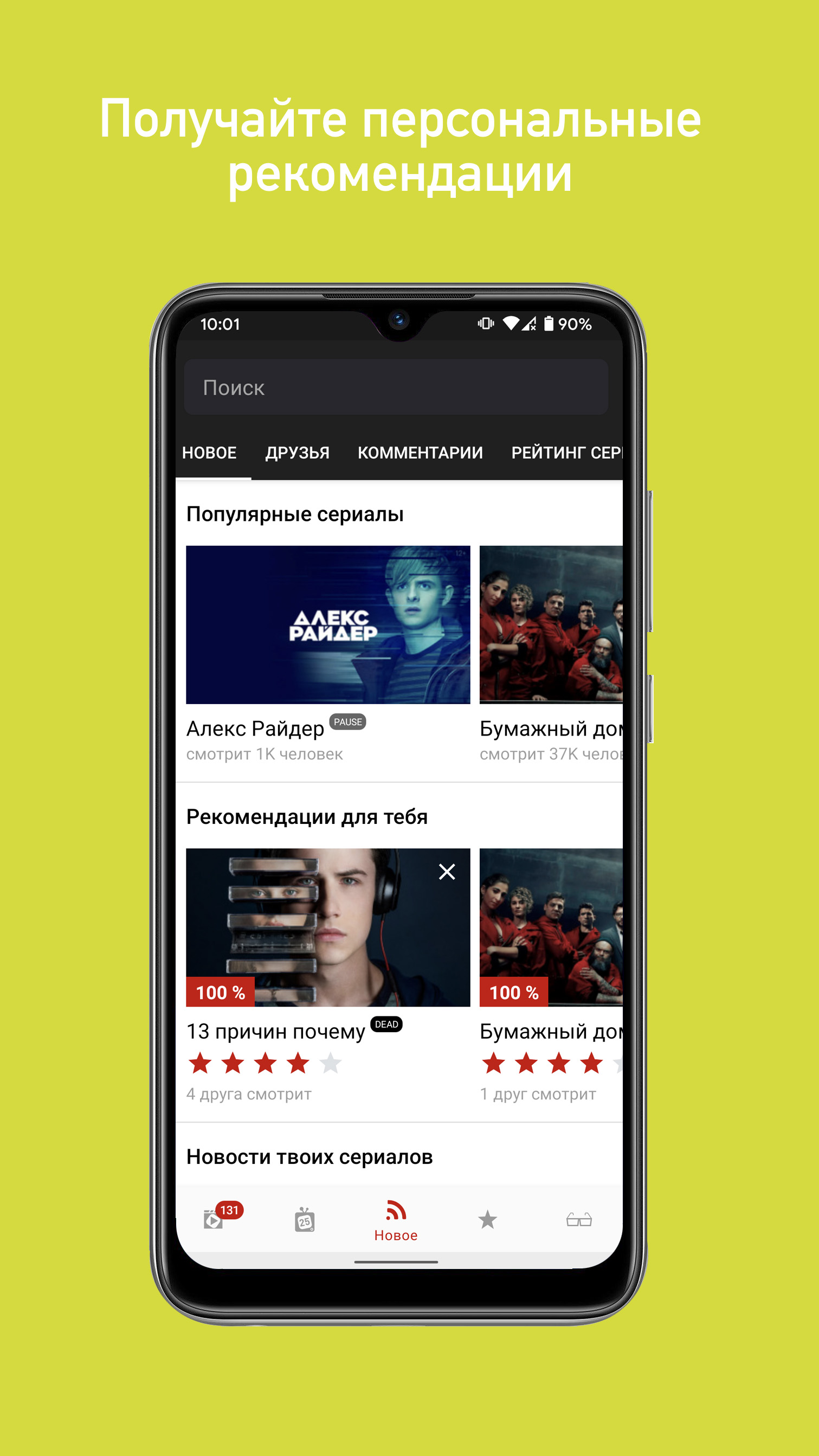 Você NÃO PODE assistir filmes ou séries de TV neste app! MyShows é o aplicativo perfeito para rastrear programas de TV e filmes que você assistiu, conversar e encontrar o que assistir. Temos um enorme banco de dados de séries de TV, episódios, atores, filmes, bem como avaliações exclusivas de usuários. MyShows irá ajudá-lo a rastrear séries de TV e visualizações de filmes: - Marque os episódios e filmes que você assistiu. - Avalie os filmes e episódios que você assiste. - Adicione filmes e séries de TV às suas listas de observação. - Receba lembretes sobre estreias e lançamentos de novos episódios. - Adicione seus programas de TV e episódios favoritos aos Favoritos. - Acompanhe suas estatísticas de visualização. MyShows irá ajudá-lo a escolher o que assistir e onde: - Beneficie-se de recomendações personalizadas com base em suas classificações e visualizações. - Adicione uma programação de lançamento de episódios com lembretes ao seu calendário ou use-a no aplicativo. - Vá aos cinemas online oficiais diretamente para os episódios desejados. - Leia nossas seleções temáticas “O que assistir esta semana” e notícias originais sobre filmes e séries de TV. MyShows é uma comunidade onde você pode encontrar pessoas que pensam como você e discutir o que assistiu: - Converse nos comentários, compartilhe sua opinião. - Adicione membros da comunidade como amigos e siga suas opiniões. - Avalie comentários de outros usuários, expressando apoio ou discordância Em MyShows você pode criar seu próprio perfil exclusivo: - Receba recompensas e participe de competições. - Crie listas pessoais. - Transferir marcas de visualização.