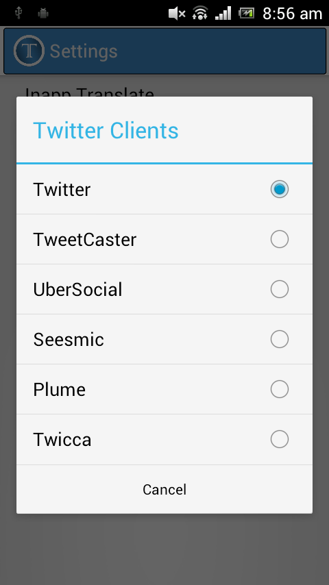 Tweelingo allows sharing any text with other apps! It can translate any text from your clipboard and allows direct retweet of the results.