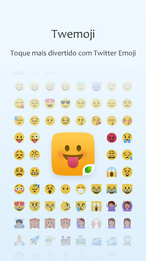Você ama emoji livre? Você ama Twitter? Bem, Twemoji (Livre Twitter Emoji) é o melhor app para você! Teclado GO Twemoji é totalmente gratuitamente e somente para Teclado GO (com 10000 + temas coloridos e 800+ emoji, emoticons e rostos sorridentes) ! Clique aqui para instalar o Teclado GO (Emoji Livre) ! Nota:. Requer V2.56 ou superior do suporte do teclado GO ★ Como aplicar o Twemoji: Passo 1. Baixe este Twemoji e Teclado GO . Passo 2. Clique em Teclado GO -> Configurações> Emoji -> Twemoji-> Aplicar Toque mais divertido com Twitter Emoji, Participe do nosso Facebook: https://www.facebook.com/gokeyboard Siga-nos no Twitter: https://twitter.com/GOforkeyboard Copyright 2014 Twitter, Inc and other contributors