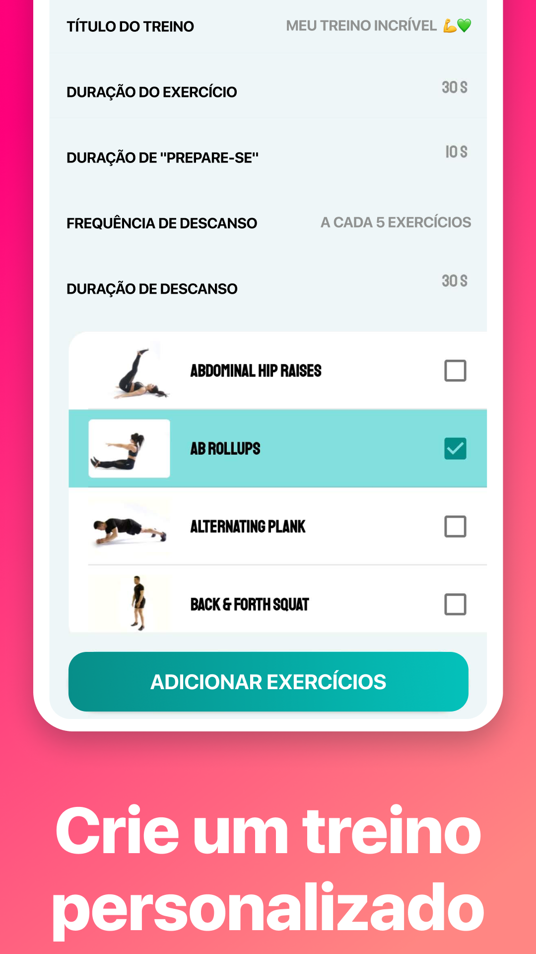 Exercícios personalizadosCrie suas próprias rotinas de treino a partir de nosso banco de dados de mais de 90 exercícios em vídeo.
