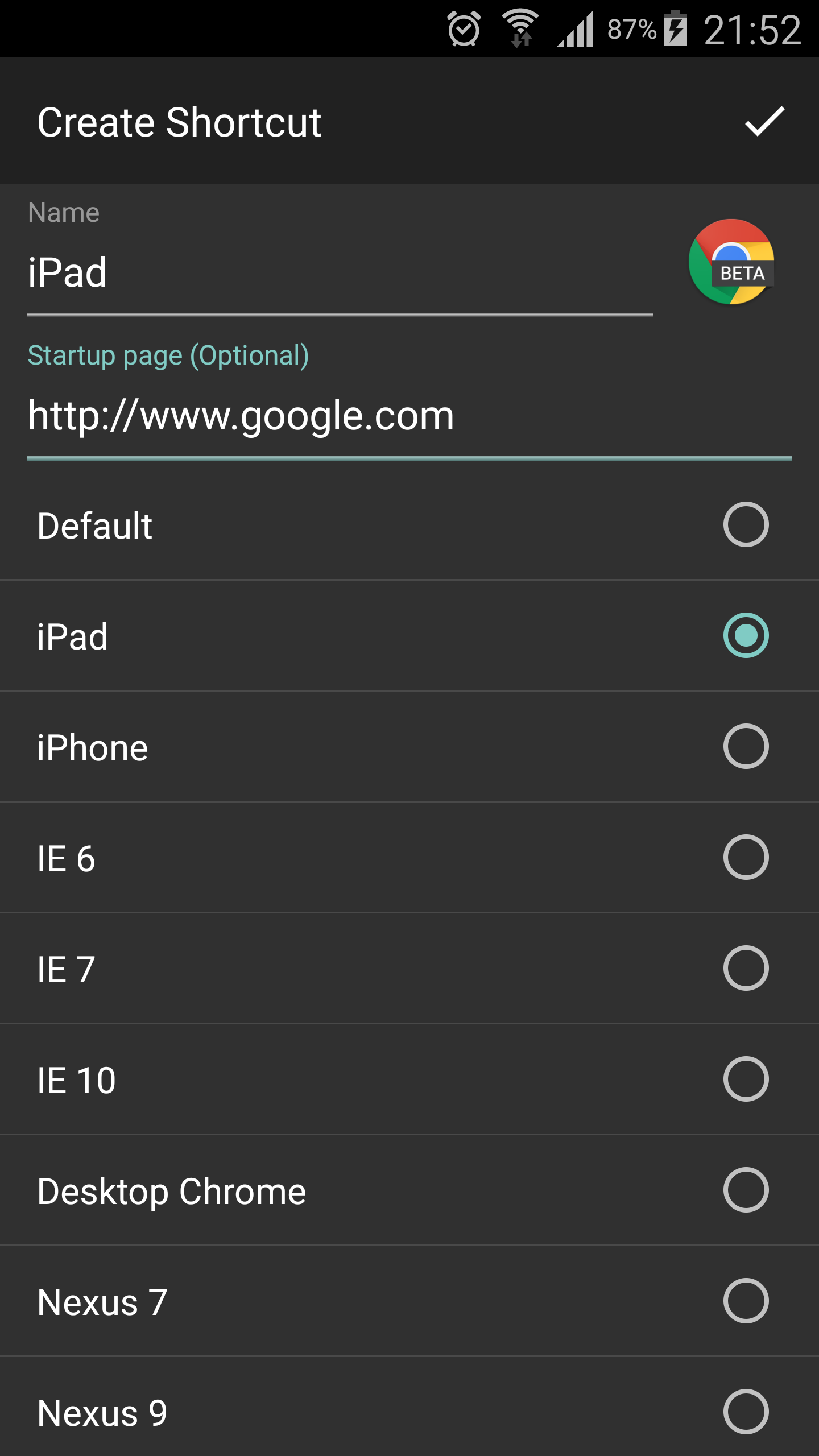 Create shortcut for user agent and startup pages ( need buxybox installed)